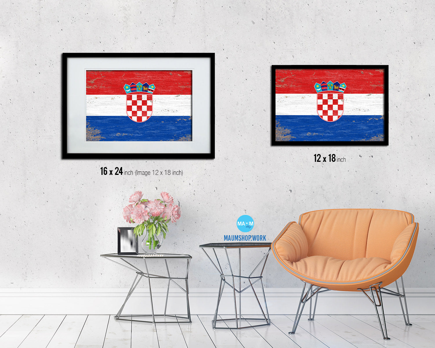 Croatia Shabby Chic Country Flag Wood Framed Print Wall Art Decor Gifts