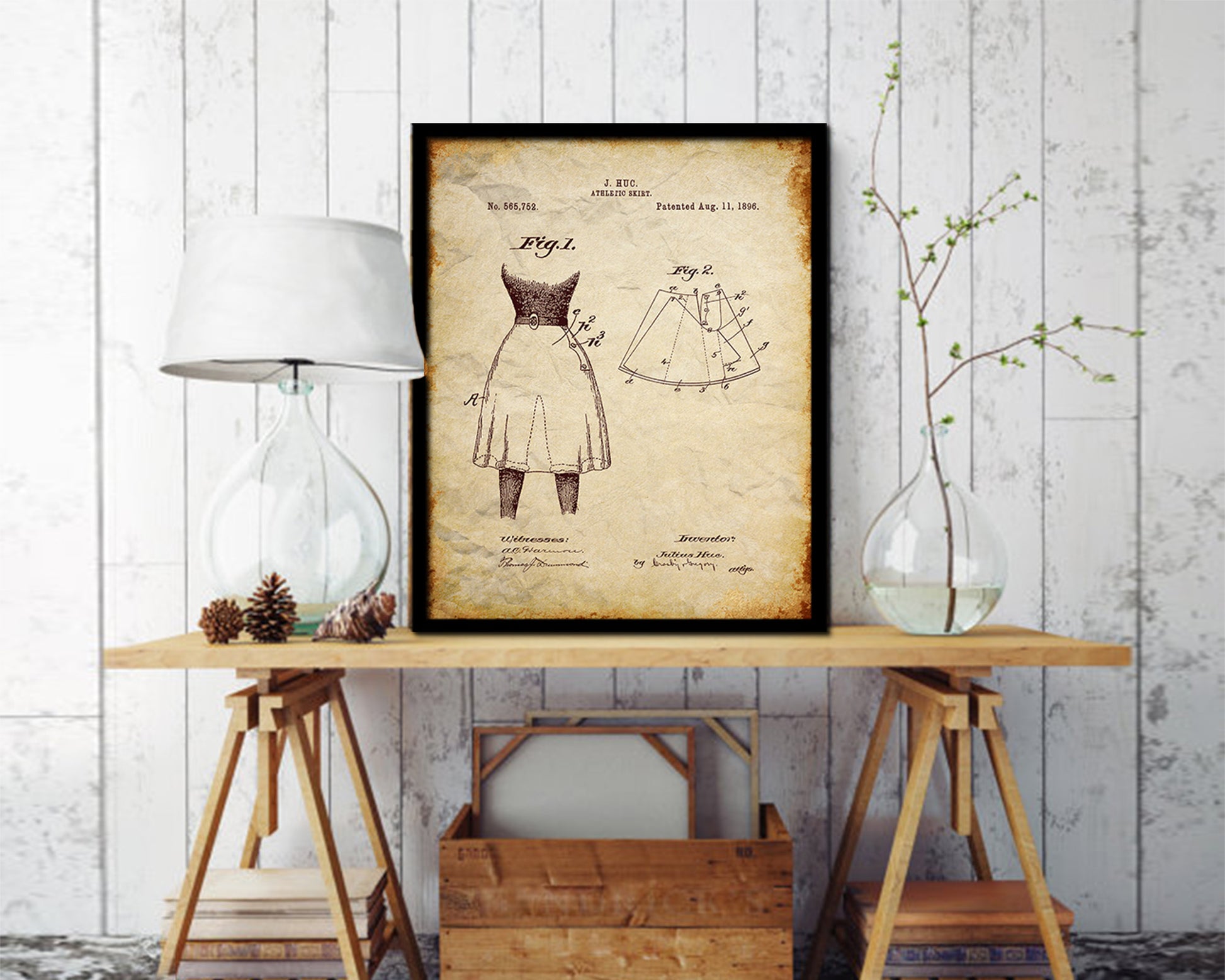 Athletic Skirt Dancer Vintage Patent Artwork Walnut Frame Print Wall Art Decor Gifts