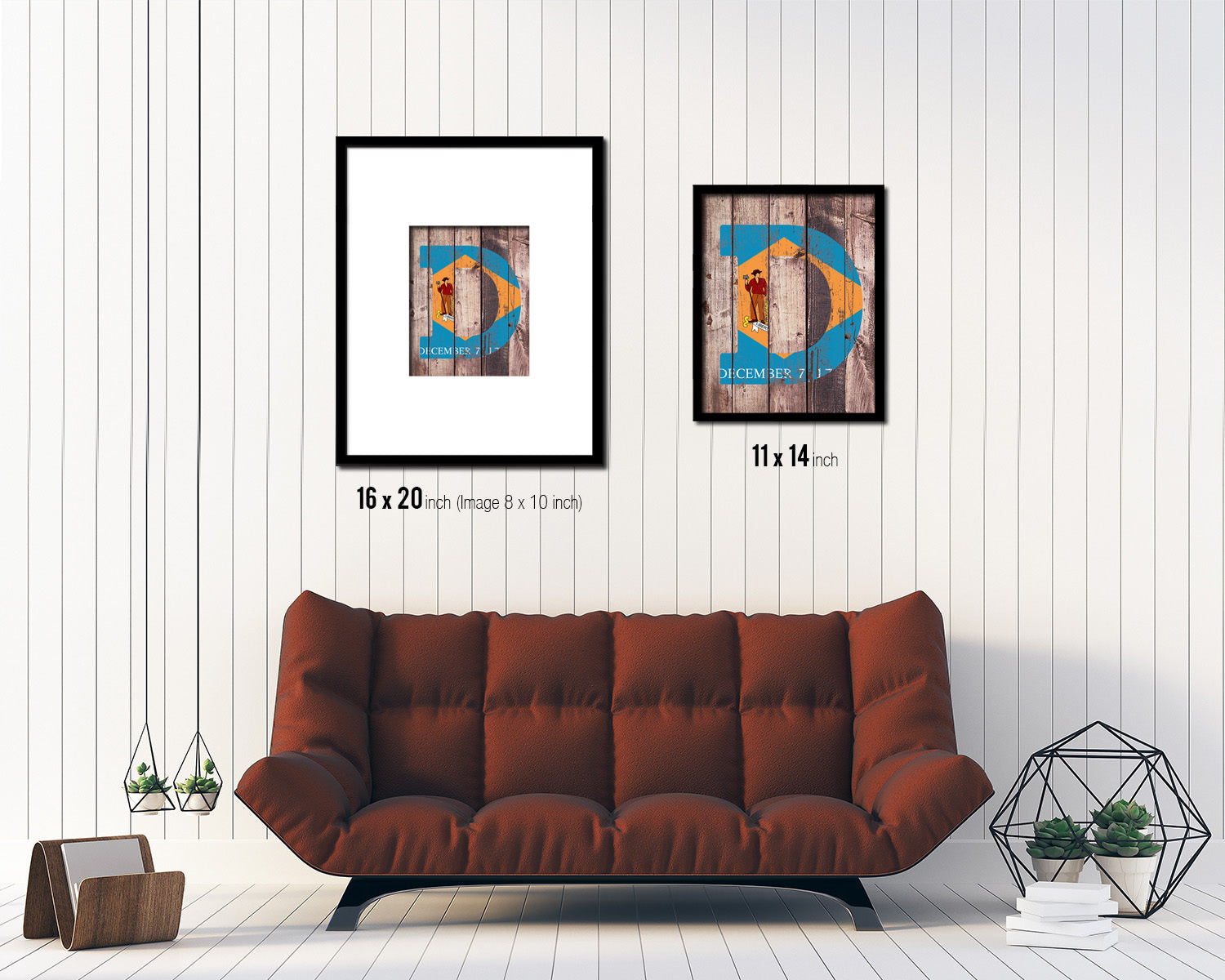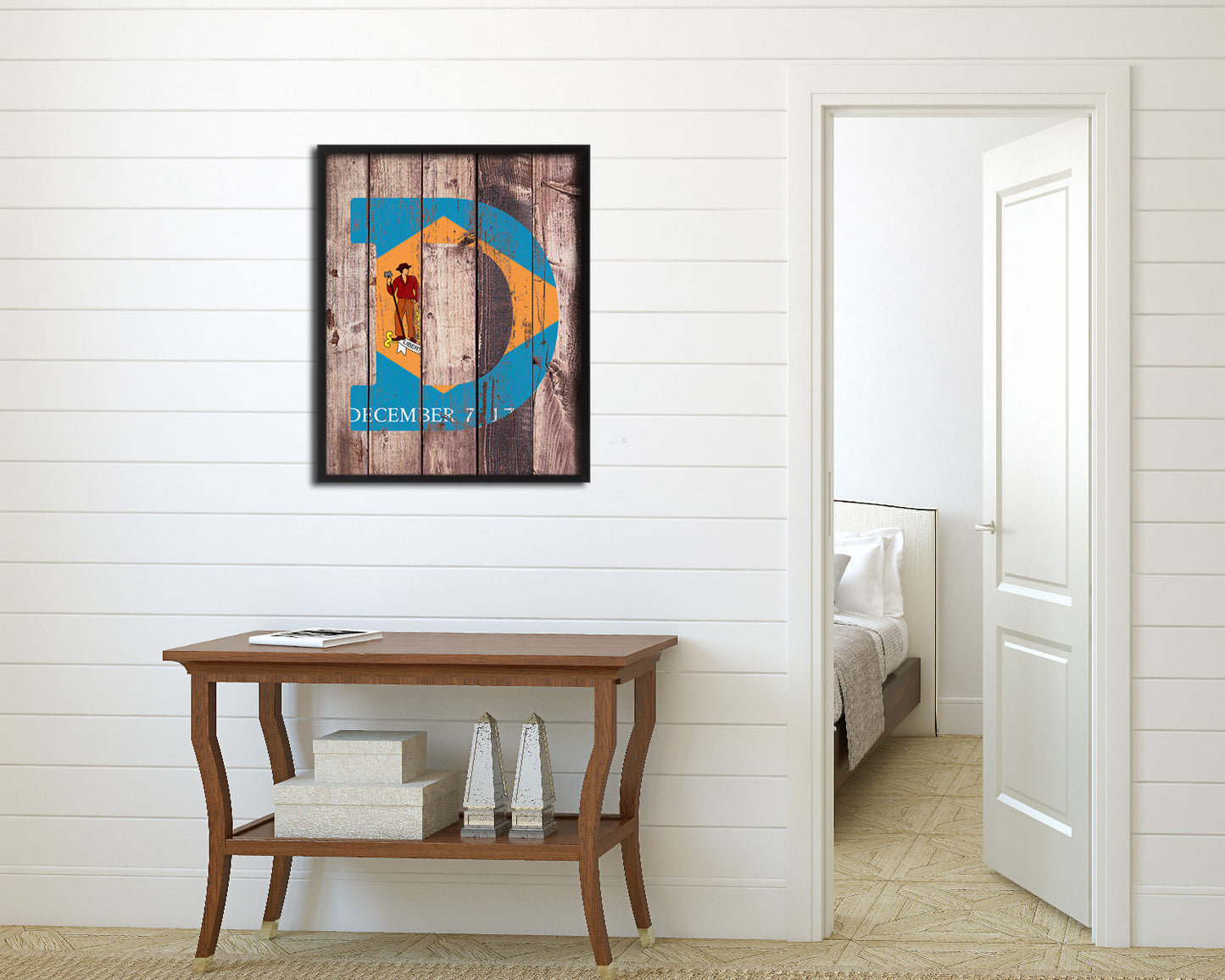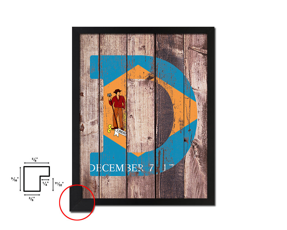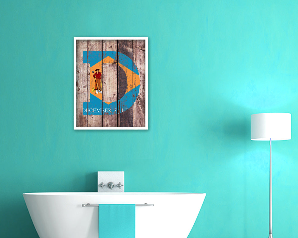 Delaware State Initial Flag Wood Framed Paper Print Decor Wall Art Gifts, Wood