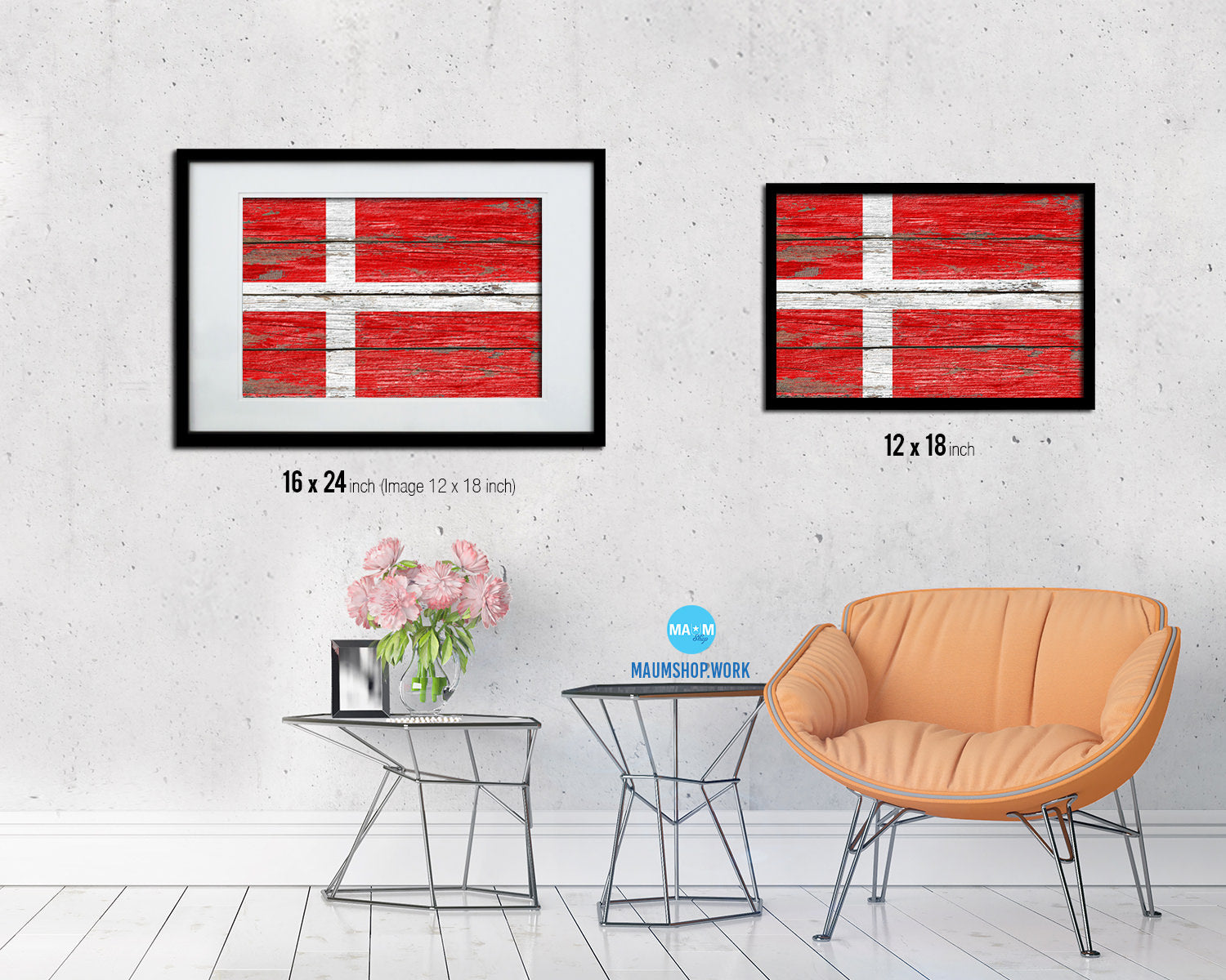 Denmark Country Wood Rustic National Flag Wood Framed Print Wall Art Decor Gifts