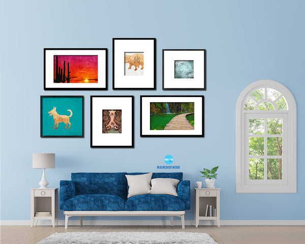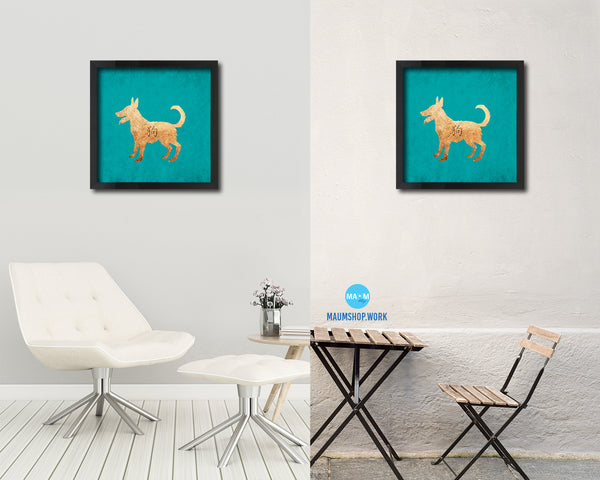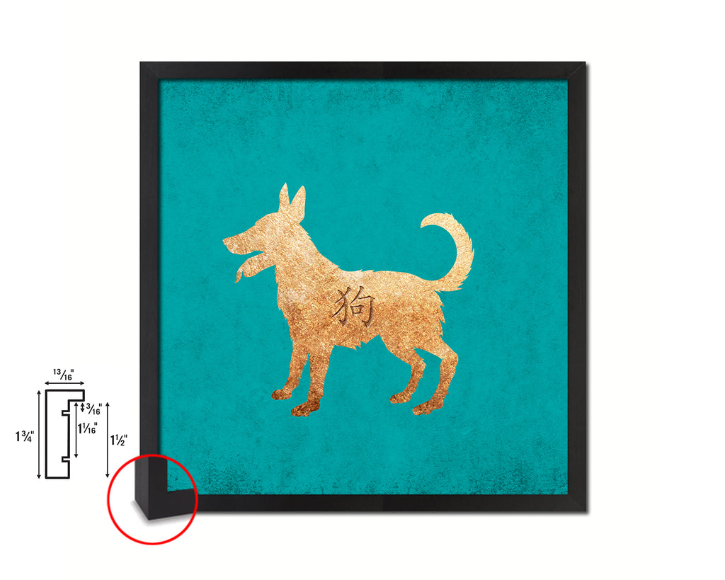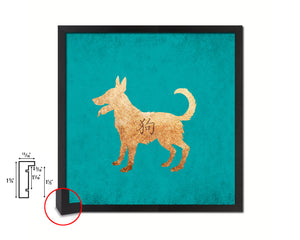 Dog Chinese Zodiac Character Wood Framed Print Wall Art Decor Gifts, Aqua