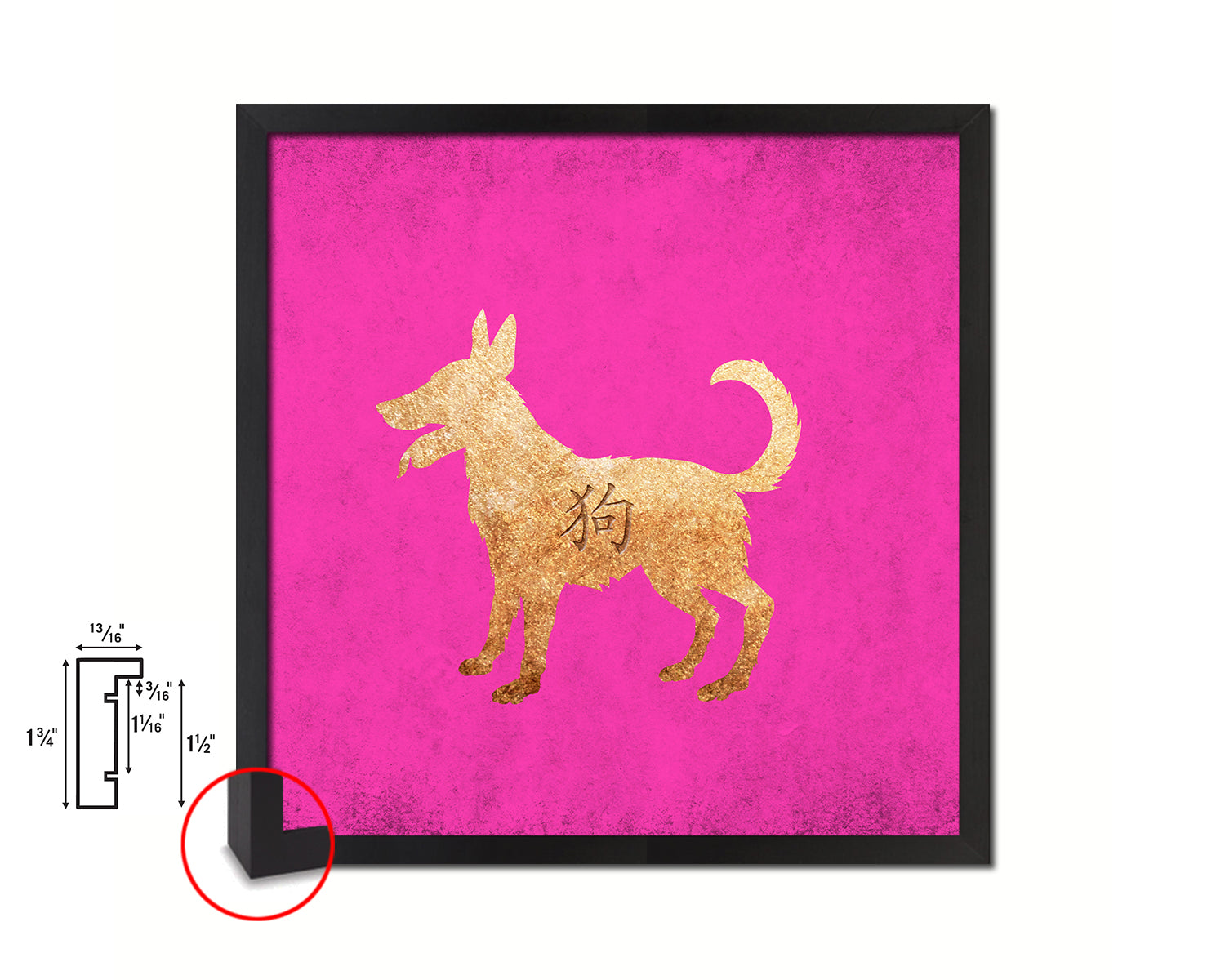 Dog Chinese Zodiac Character Wood Framed Print Wall Art Decor Gifts, Pink