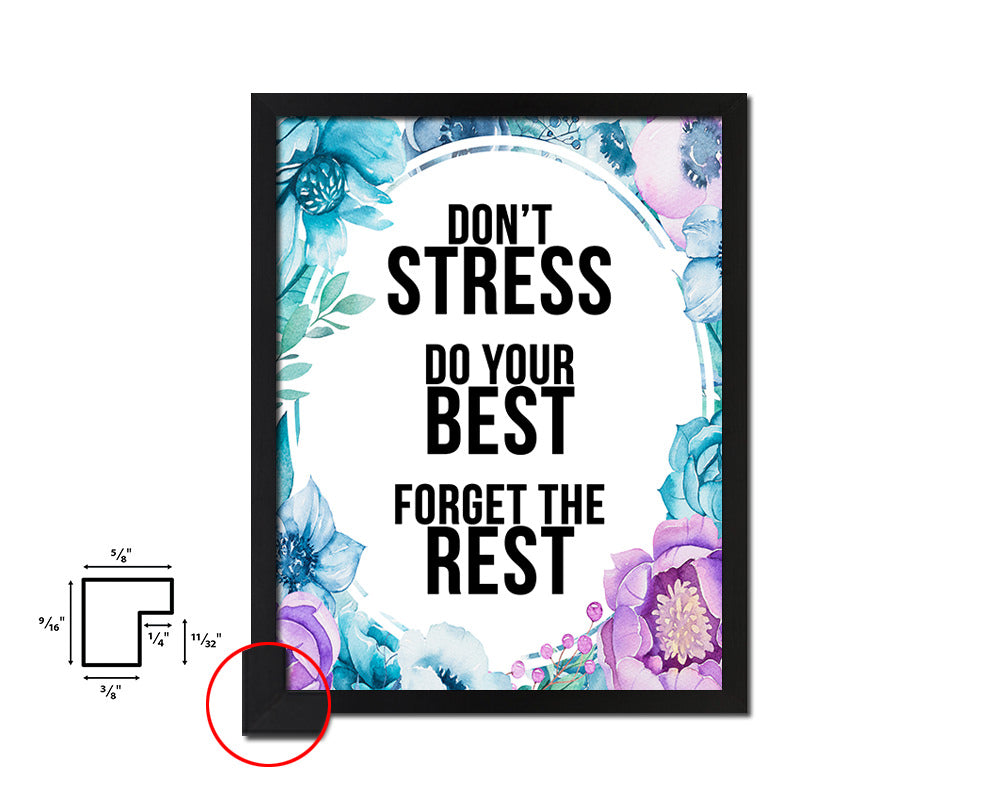 Don't stress do your best for get the rest Quote Boho Flower Framed Print Wall Decor Art
