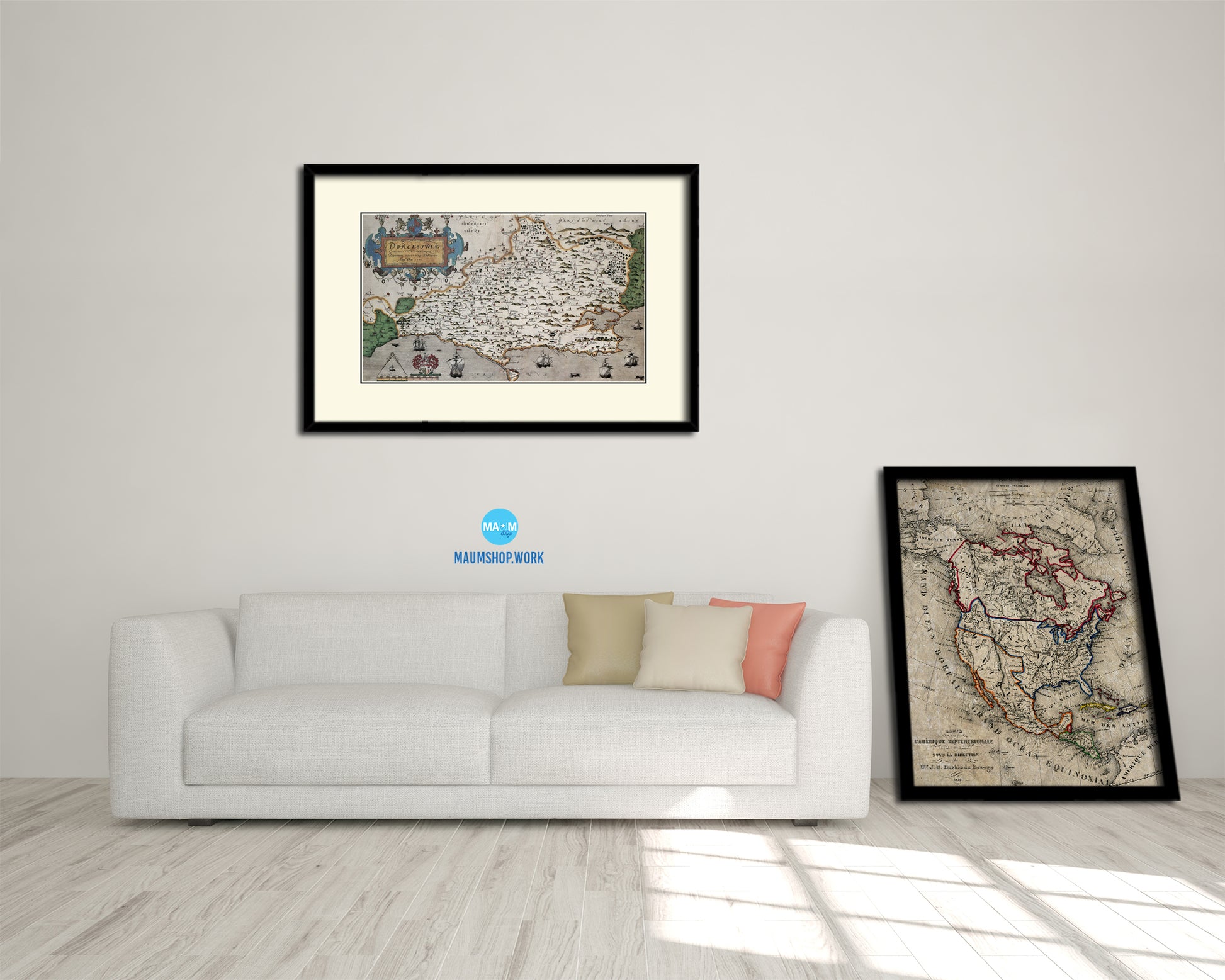 Dorset Atlas England Wales Christopher Saxton Old Map Framed Print Art Wall Decor Gifts