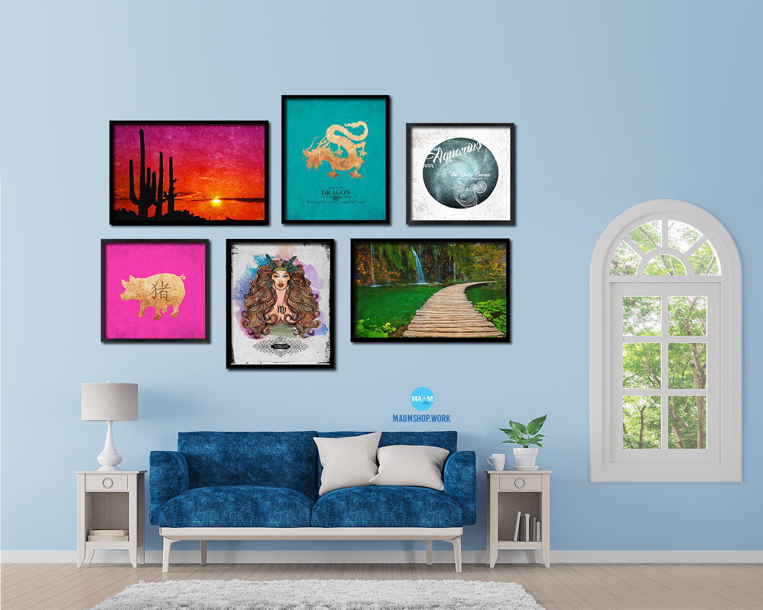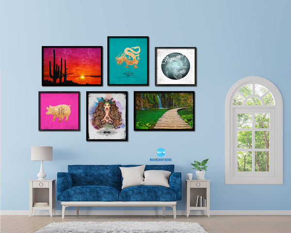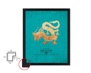Dragon Chinese Zodiac Character Black Framed Art Paper Print Wall Art Decor Gifts, Aqua