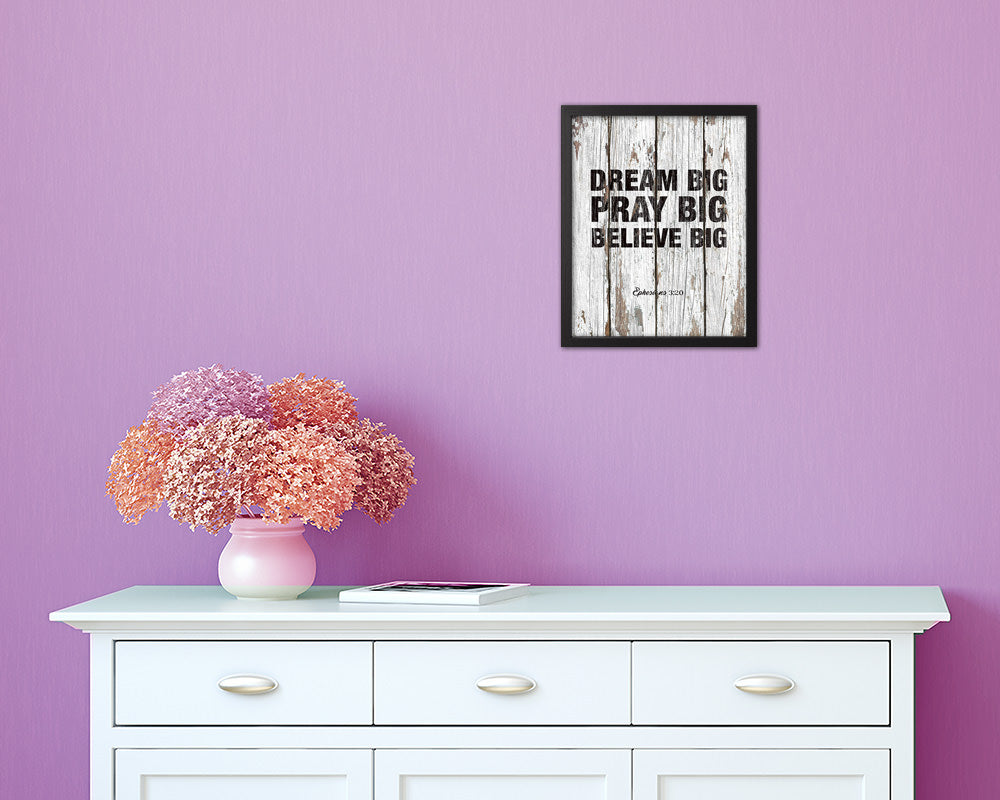Dream Pray Bbelieve Big Quote Wood Framed Print Home Decor Wall Art Gifts