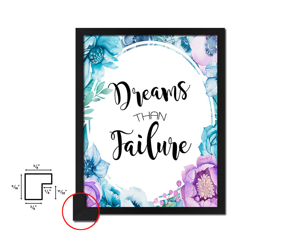 Dreams than failure Quote Boho Flower Framed Print Wall Decor Art