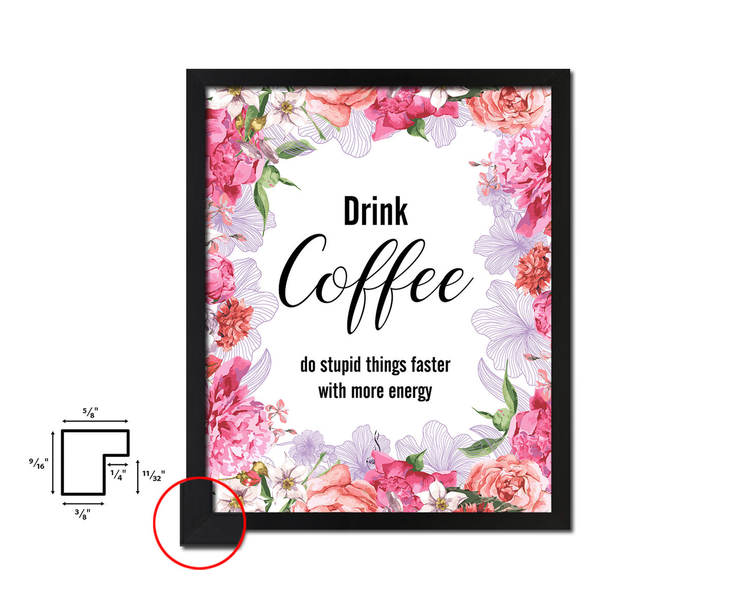 Drink coffee do stupid things faster with more energy Quote Framed Artwork Print Wall Decor Art Gifts
