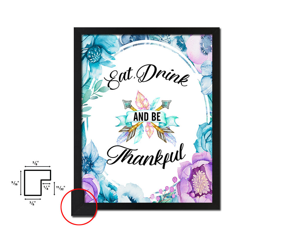 Eat drink & be thankful Quote Boho Flower Framed Print Wall Decor Art