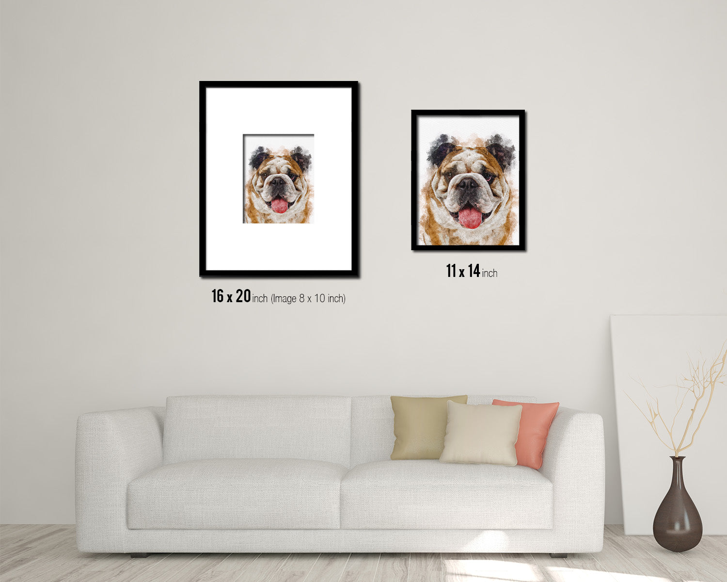 English Bulldog Dog Puppy Portrait Framed Print Pet Watercolor Wall Decor Art Gifts