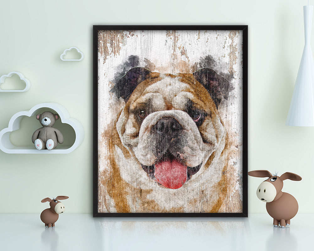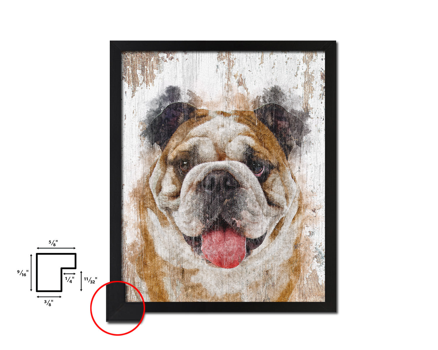 English Bulldog Dog Puppy Portrait Framed Print Pet Watercolor Wall Decor Art Gifts