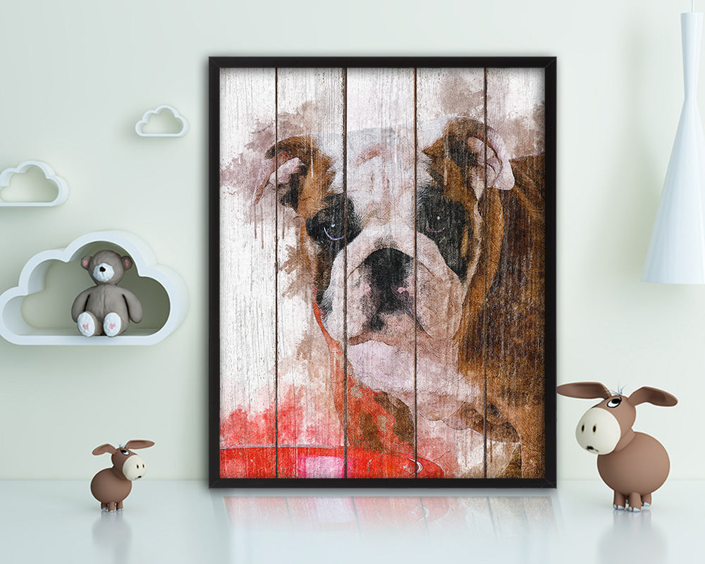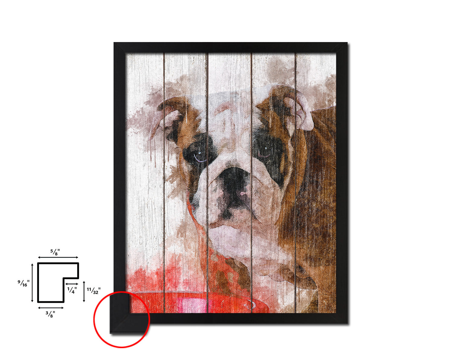 English Bulldog Dog Puppy Portrait Framed Print Pet Watercolor Wall Decor Art Gifts