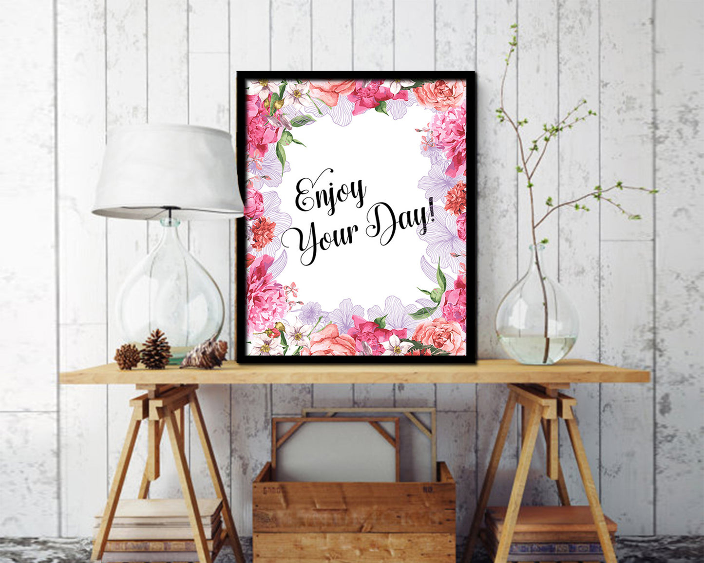 Enjoy your day Quote Wood Framed Print Home Decor Wall Art Gifts