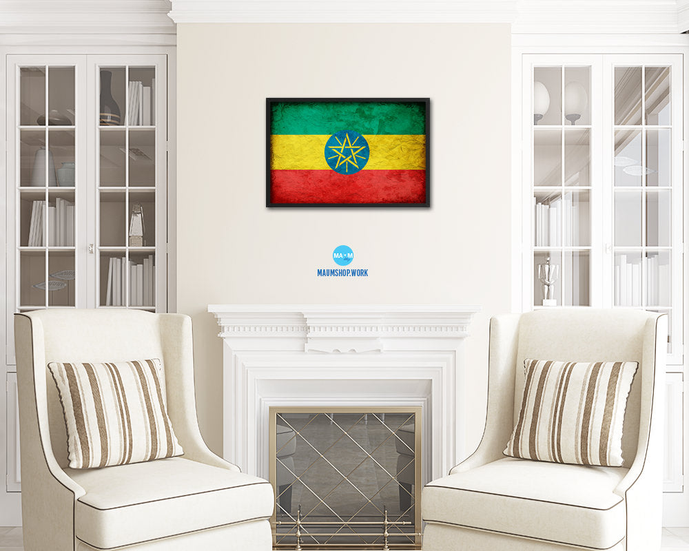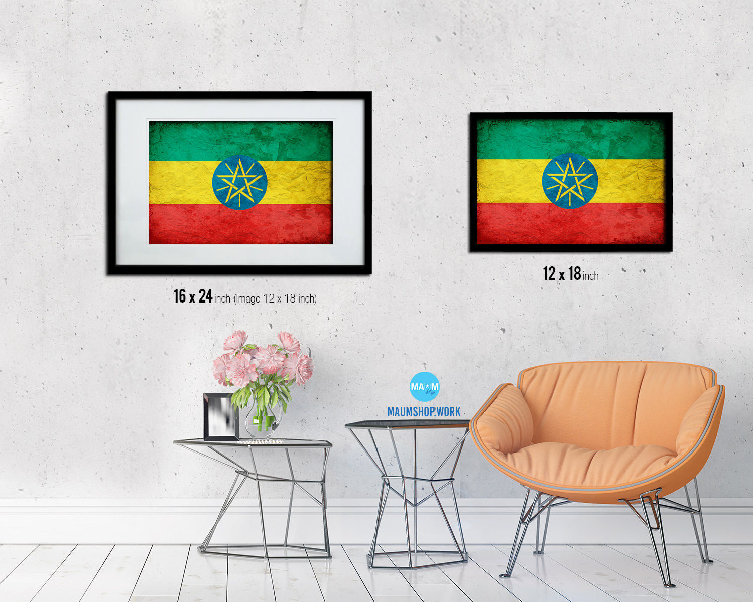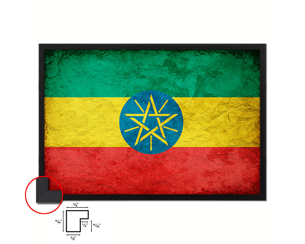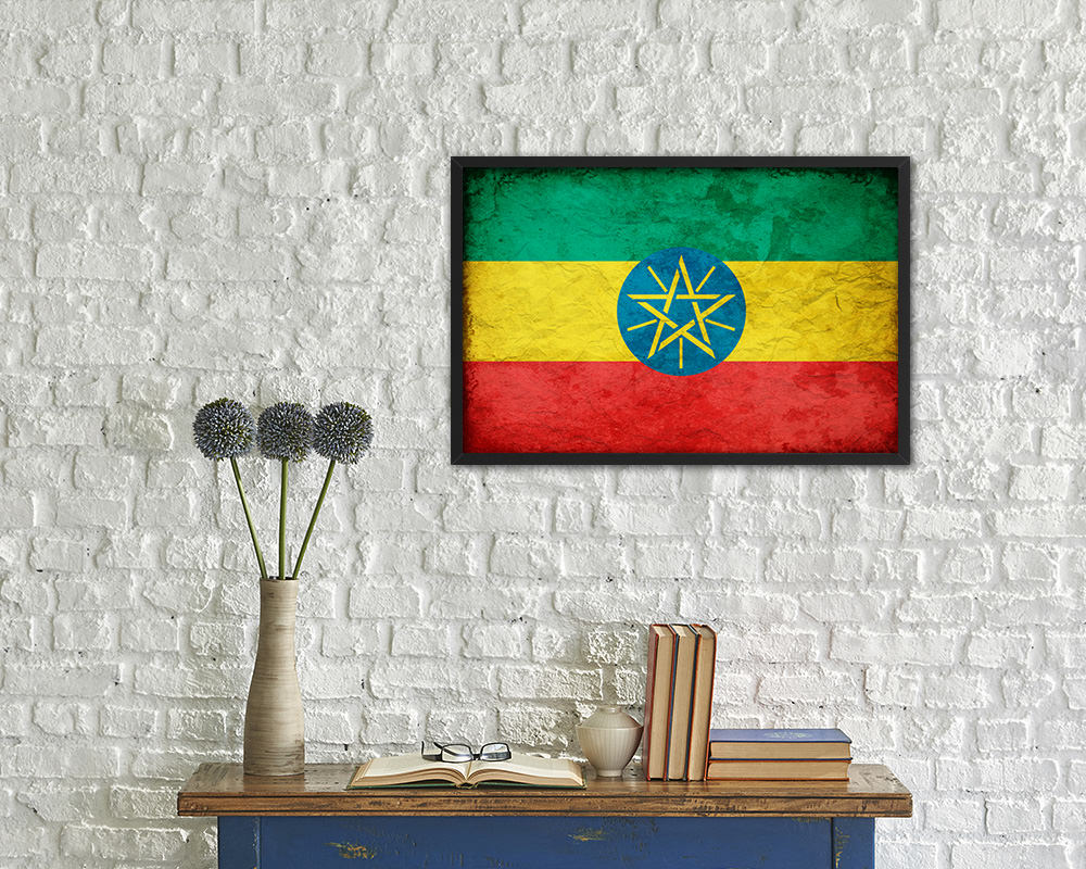 Ethiopia Country Vintage Flag Wood Framed Print Wall Art Decor Gifts