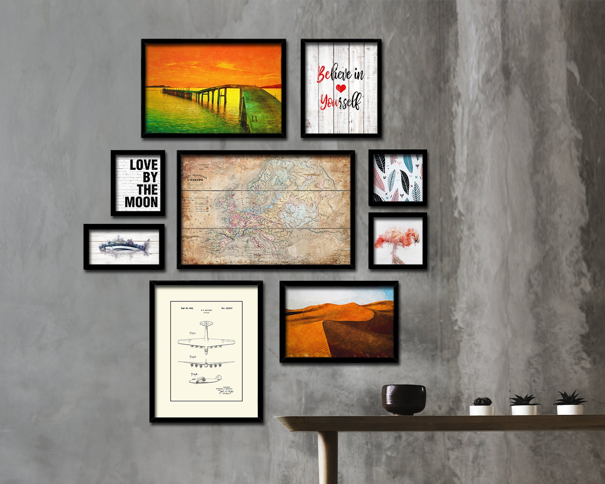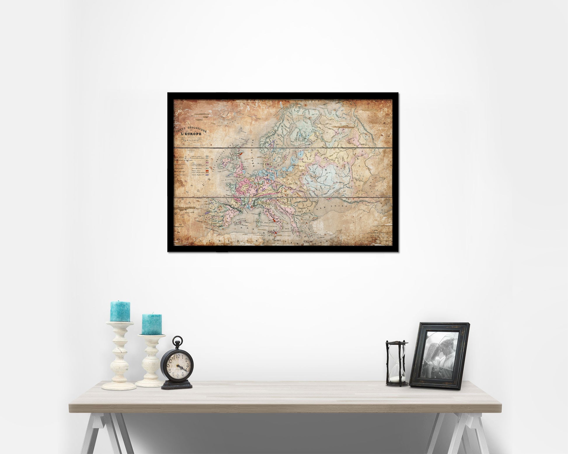 Europe Geological Antique Map Framed Print Art Wall Decor Gifts
