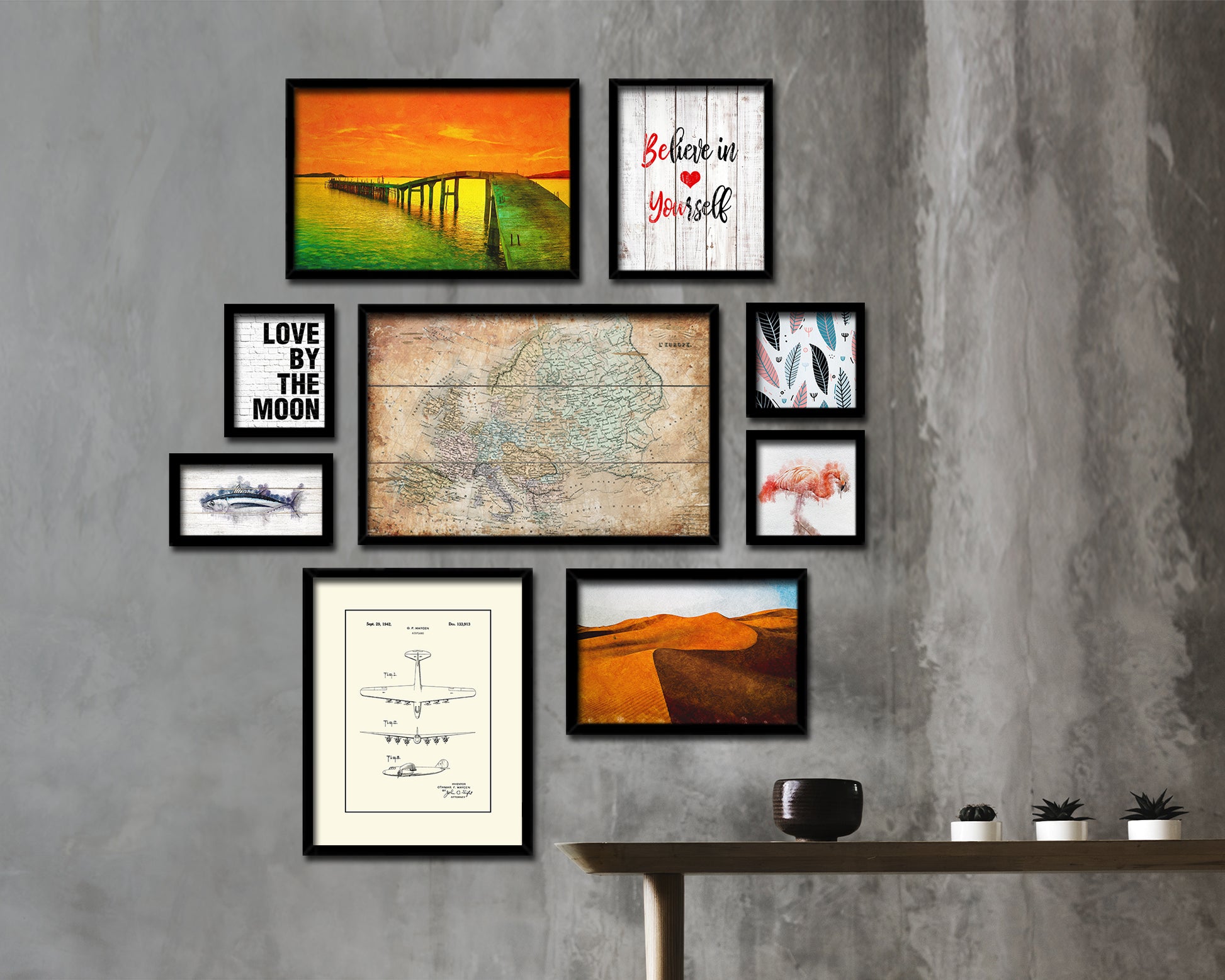 Europe Germany 1908 Antique Map Framed Print Art Wall Decor Gifts