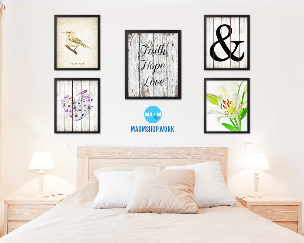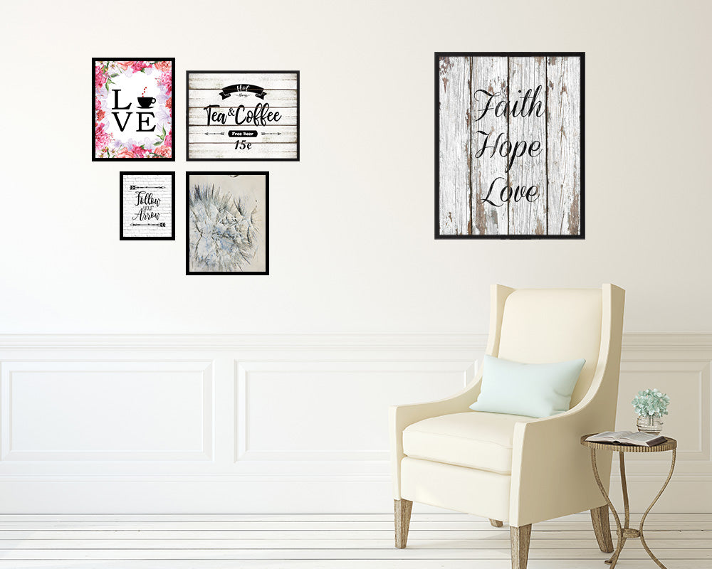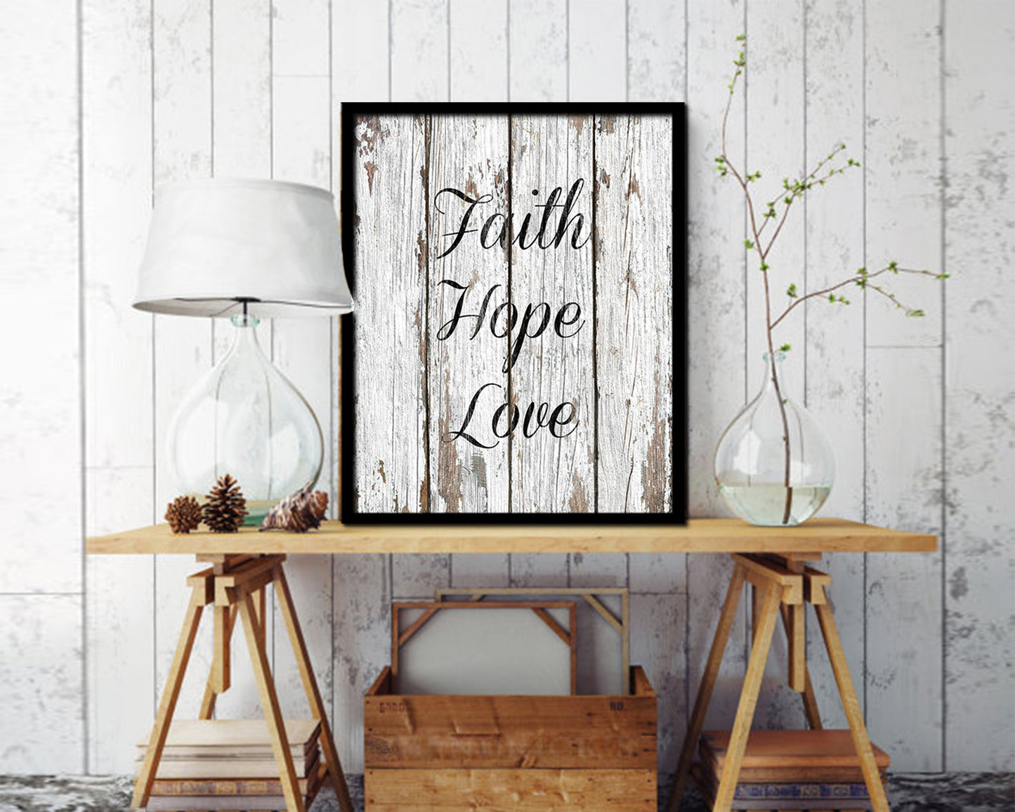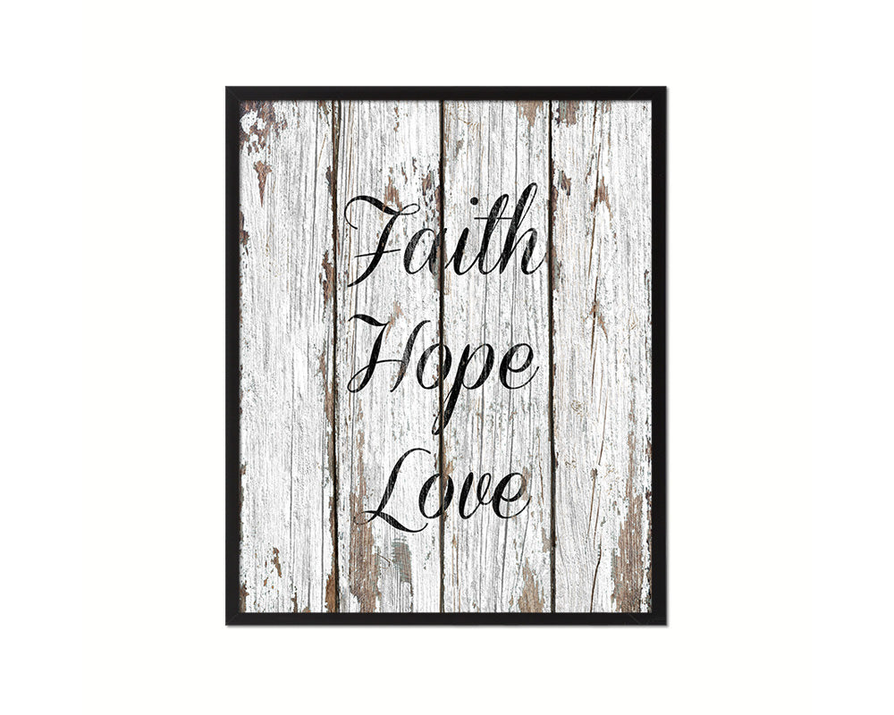 Faith Hope Love Quote Wood Framed Print Home Decor Wall Art Gifts