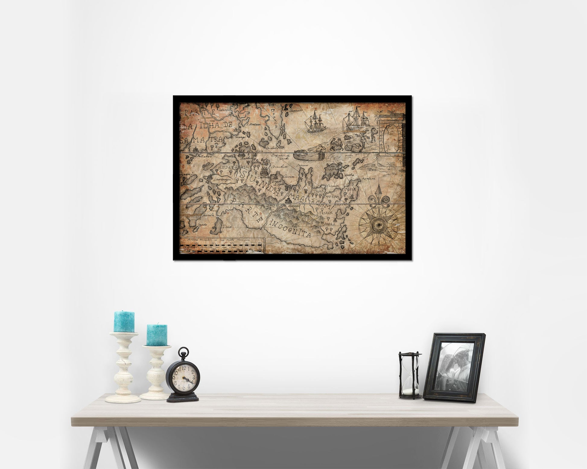 Fantasyland Pirate Antique Map Framed Print Art Wall Decor Gifts