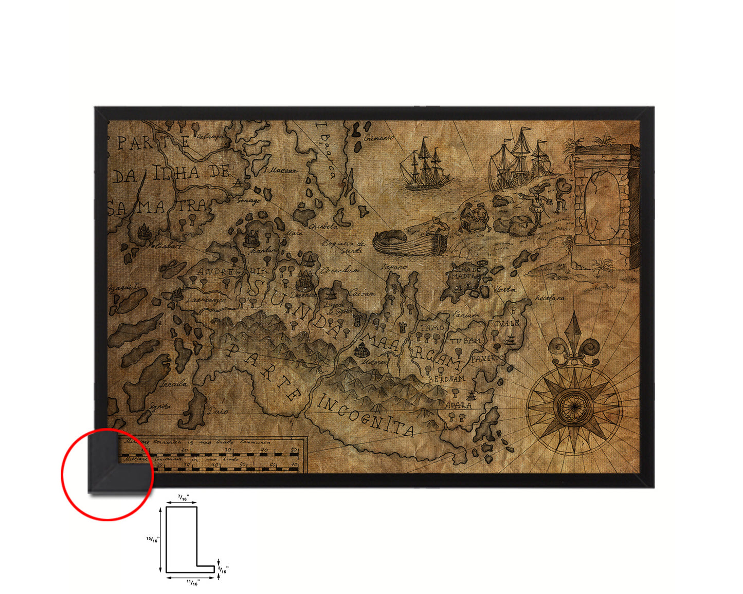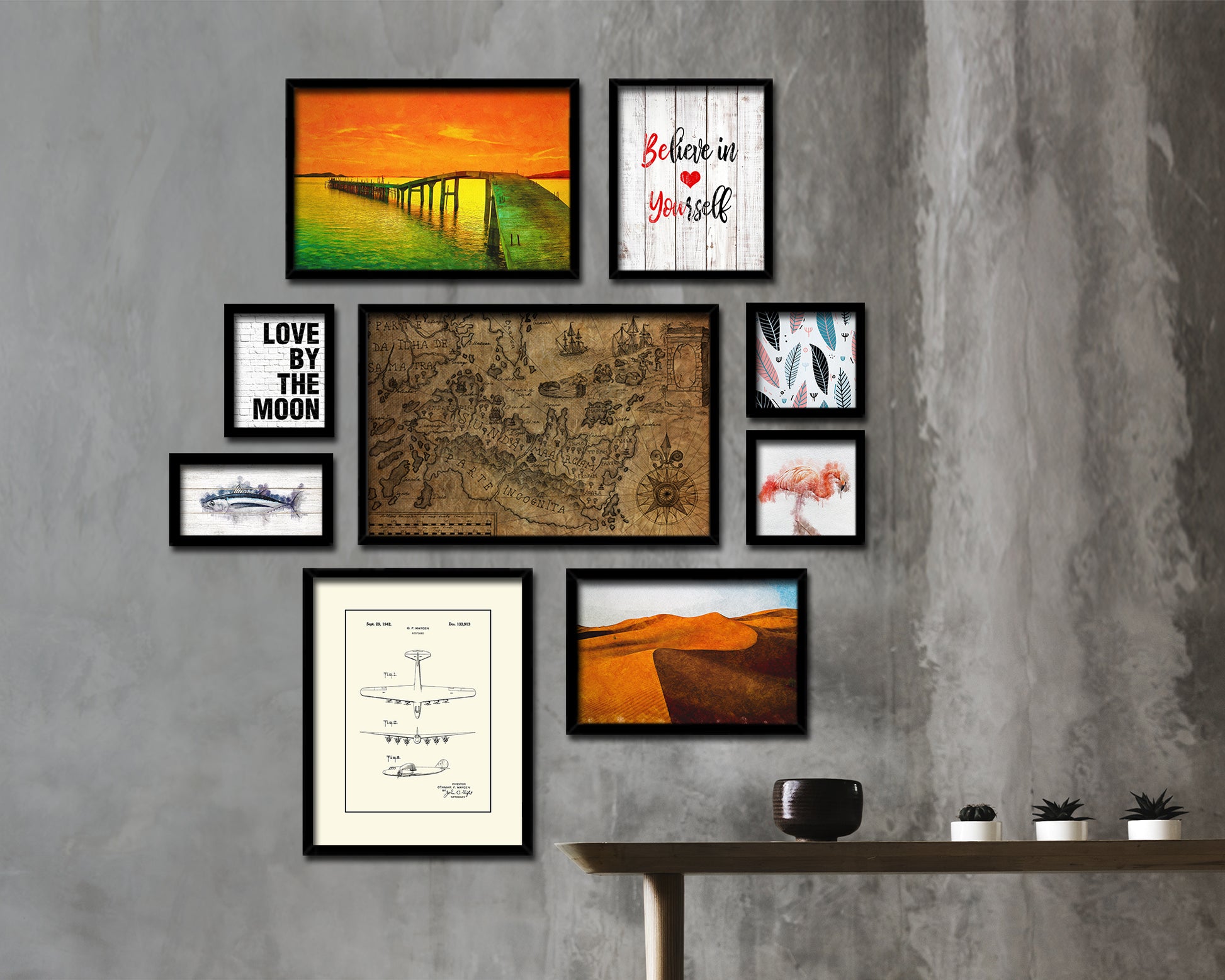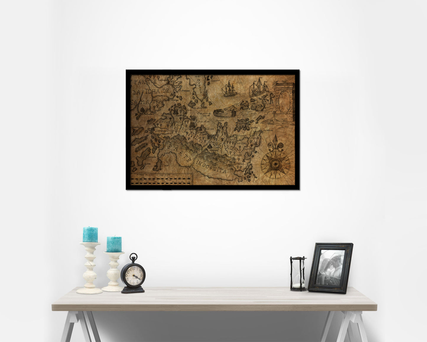 Fantasyland Pirate Vintage Map Framed Print Art Wall Decor Gifts