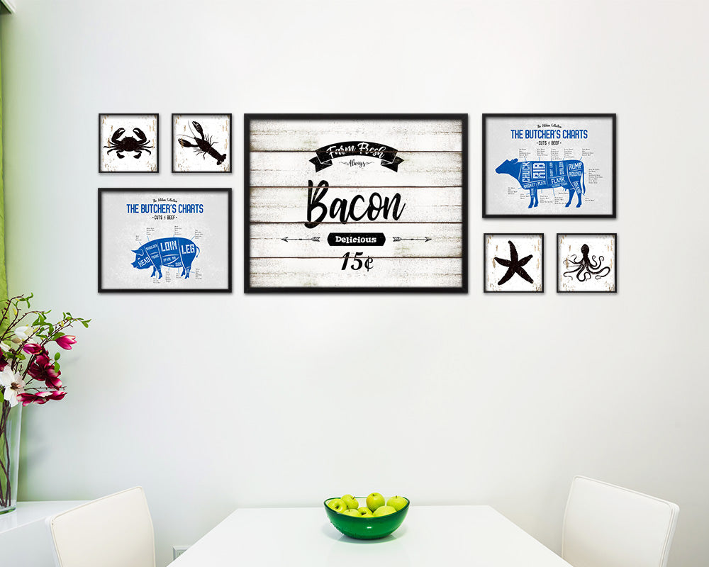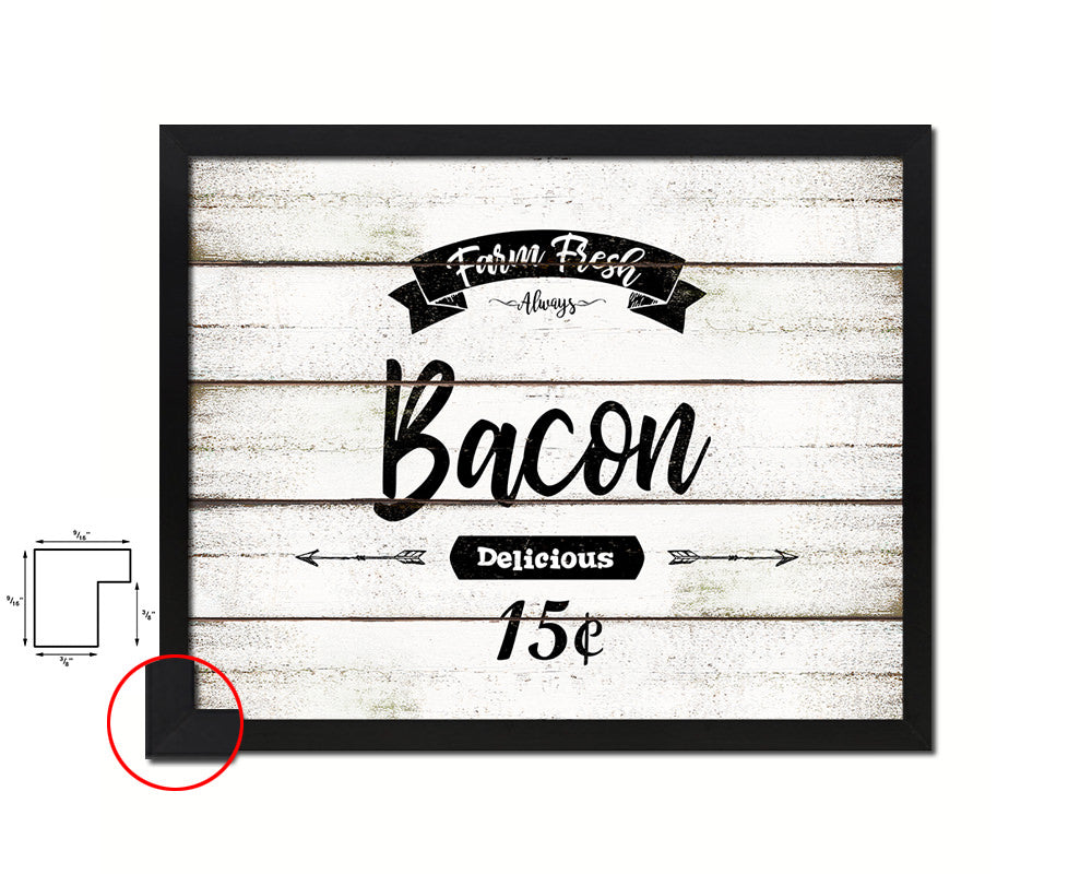 Farm Fresh Bacon Vintage Sign Fine Art Paper Prints Wood Frame Wall Art Decor Gifts