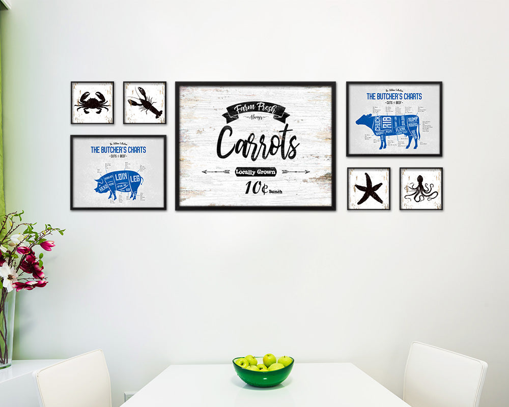 Farm Fresh Carrots Vintage Sign Fine Art Paper Prints Wood Frame Wall Art Decor Gifts