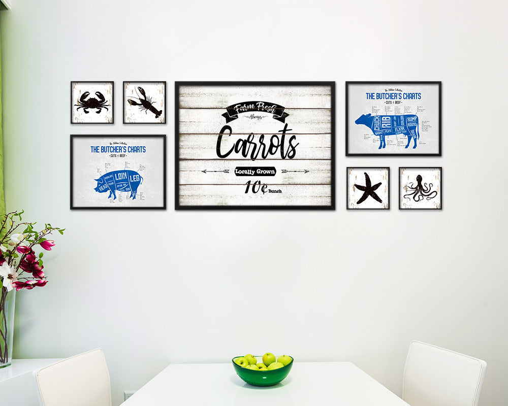 Farm Fresh Carrots Vintage Sign Fine Art Paper Prints Wood Frame Wall Art Decor Gifts
