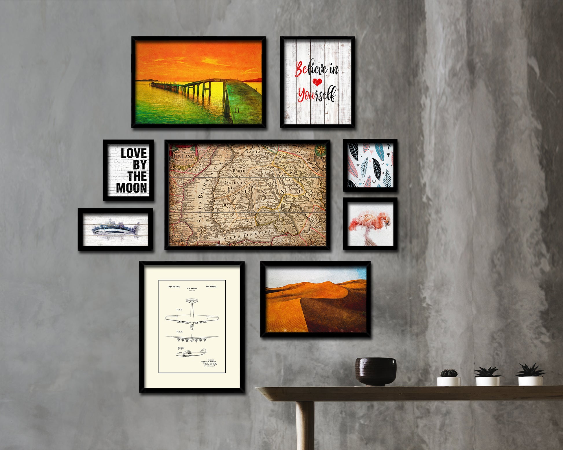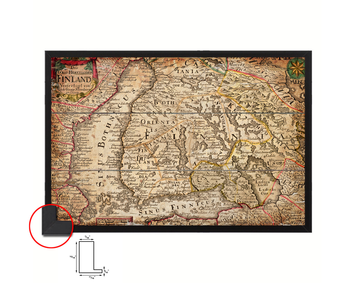 Finland Centuries Antique Map Framed Print Art Wall Decor Gifts