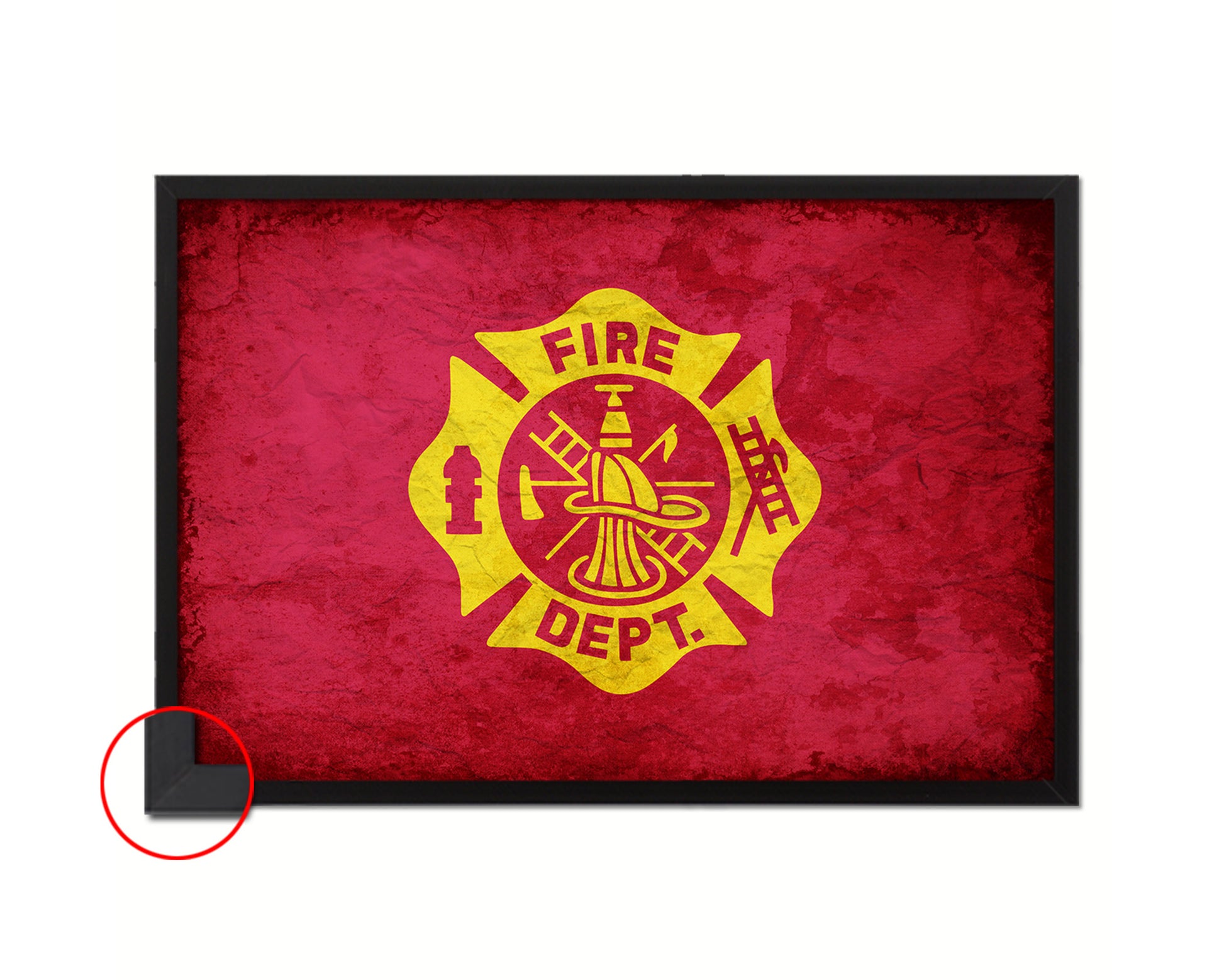 Fire Department Fire Fighter Vintage Military Flag Framed Print Sign Decor Wall Art Gifts