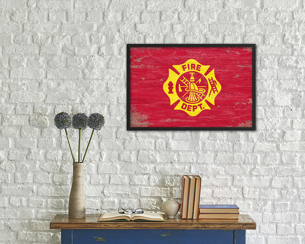 Fire Department Fire Fighter Shabby Chic Military Flag Framed Print Decor Wall Art Gifts