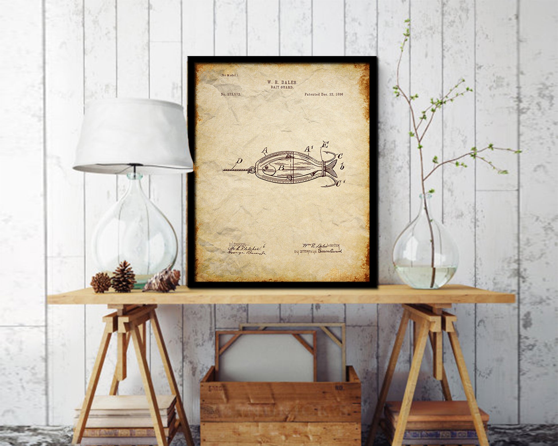 Bait Guard Fishing Vintage Patent Artwork Walnut Frame Print Wall Art Decor Gifts