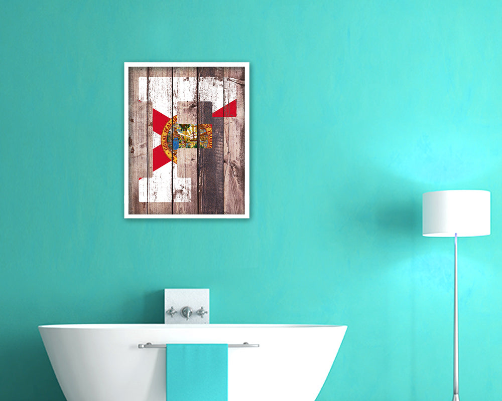 Florida State Initial Flag Wood Framed Paper Print Decor Wall Art Gifts, Wood
