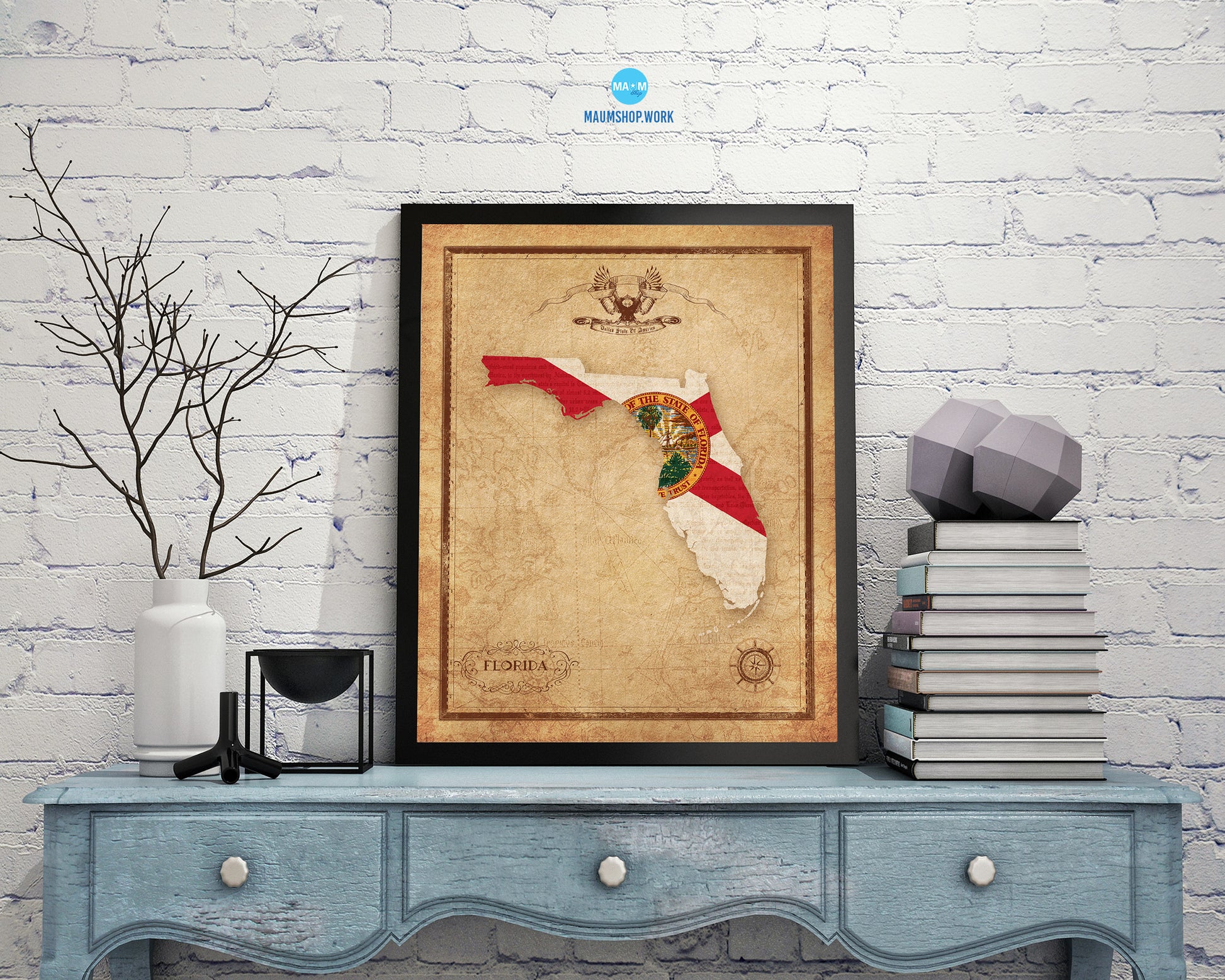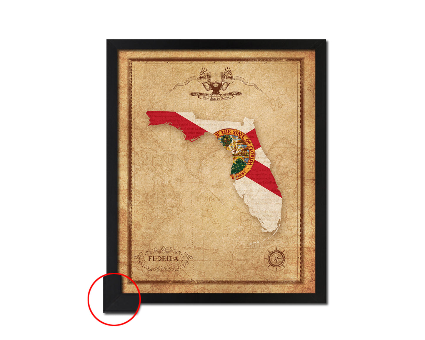 Florida State Vintage Map Wood Framed Paper Print Wall Art Decor Gifts
