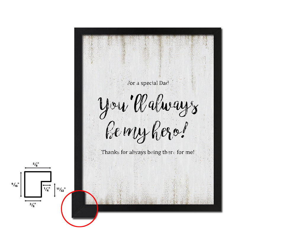 For a special dad you'll always be my hero Quote Wood Framed Print Wall Decor Art