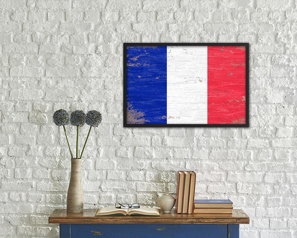 France Shabby Chic Country Flag Wood Framed Print Wall Art Decor Gifts