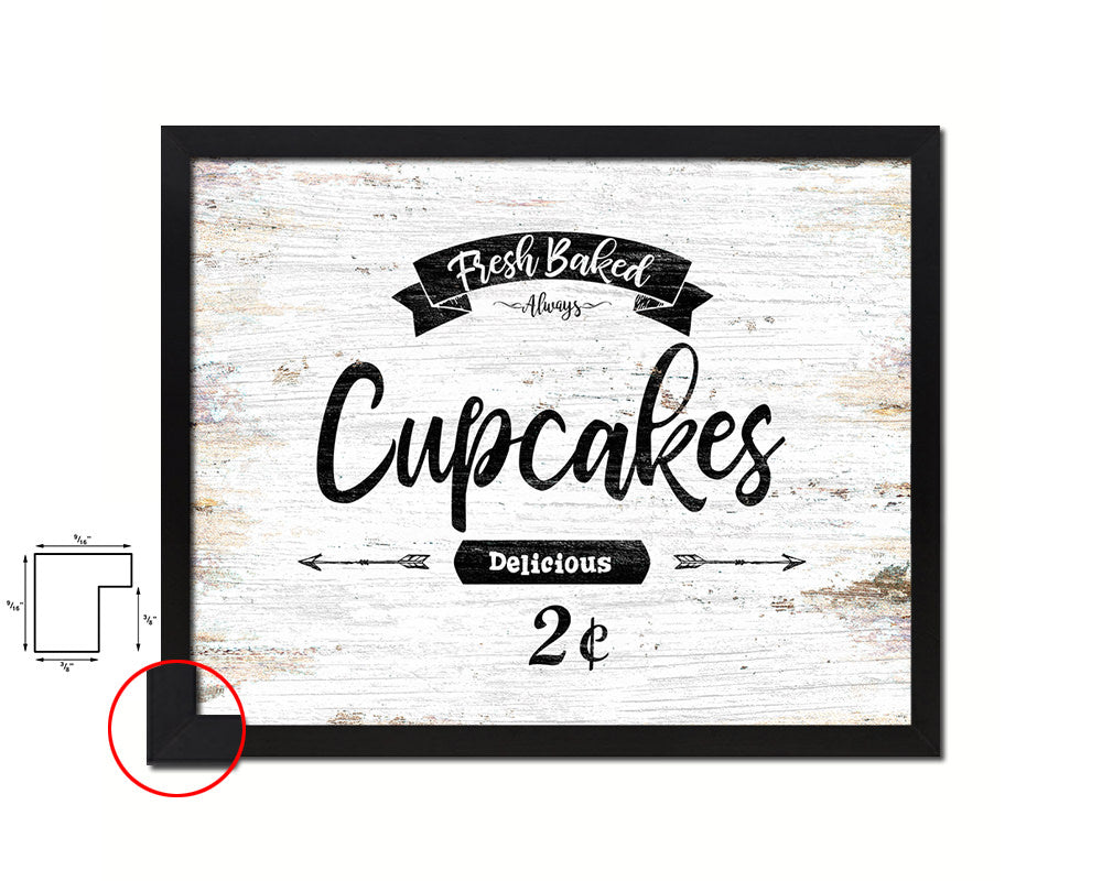 Fresh Baked Cupcakes Vintage Sign Fine Art Paper Prints Wood Frame Wall Art Decor Gifts