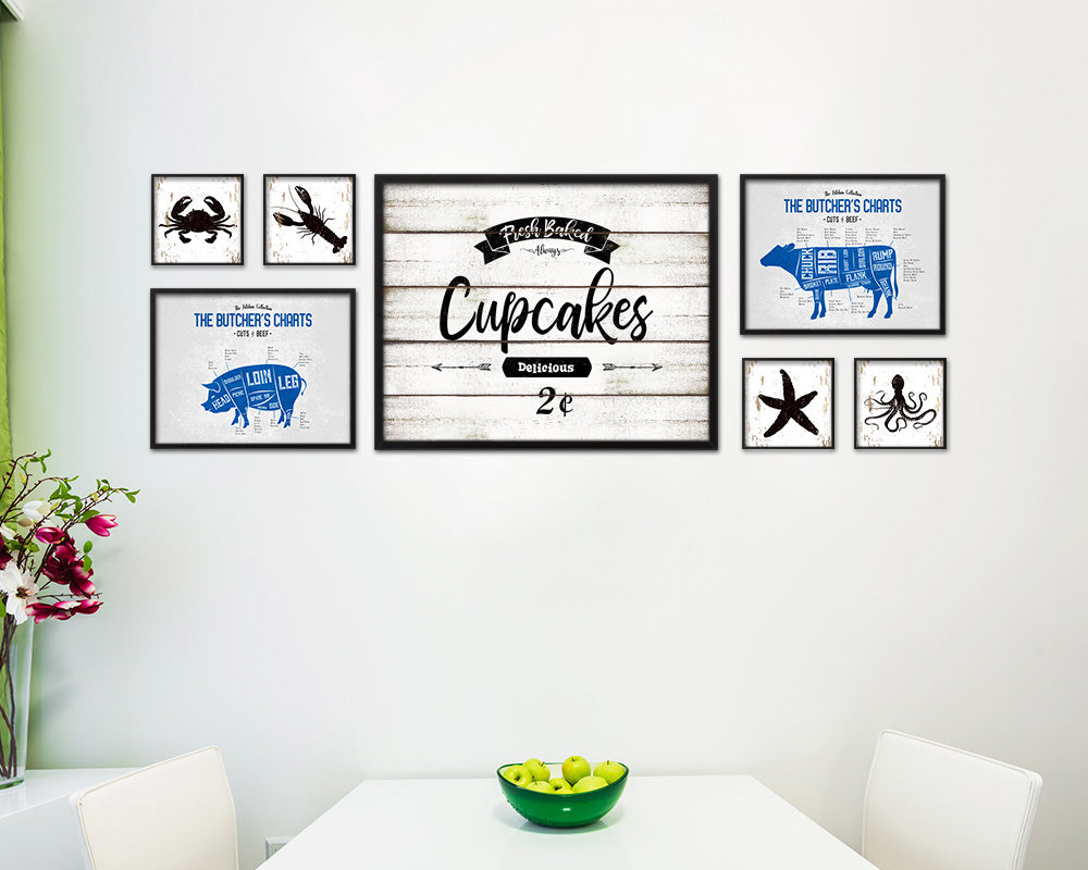 Fresh Baked Cupcakes Vintage Sign Fine Art Paper Prints Wood Frame Wall Art Decor Gifts