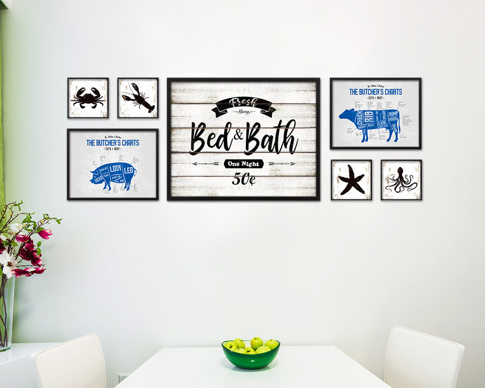 Fresh Bed & Bath Vintage Sign Fine Art Paper Prints Wood Frame Wall Art Decor Gifts