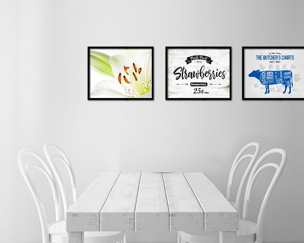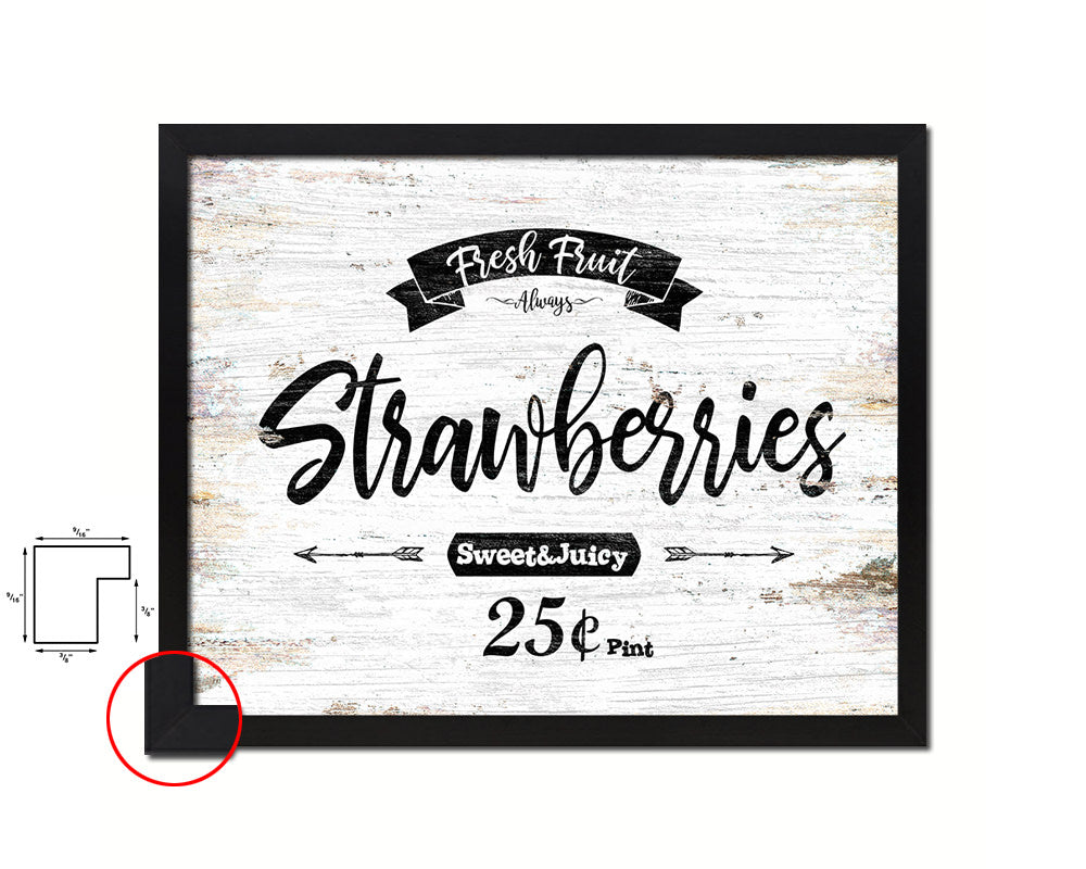 Fresh Fruit Strawberries Vintage Sign Fine Art Paper Prints Wood Frame Wall Art Decor Gifts