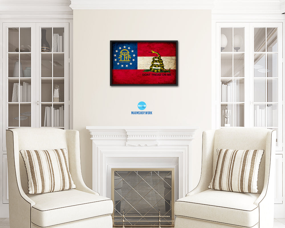 Gadsden Don't Tread On Me Georgia State Vintage Military Flag Framed Print Art