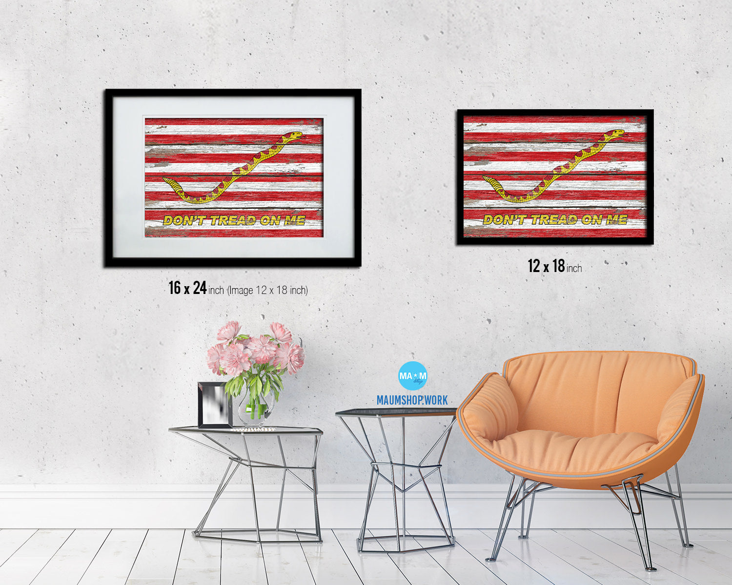 Gadsden First Navy Jacks Dont tread on Me Wood Rustic Flag Framed Print Art