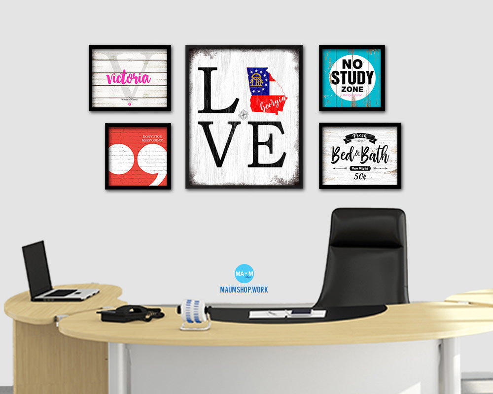 Georgia Shabby Chic Love Sign Wood Framed Paper Print Decor Wall Art Gifts