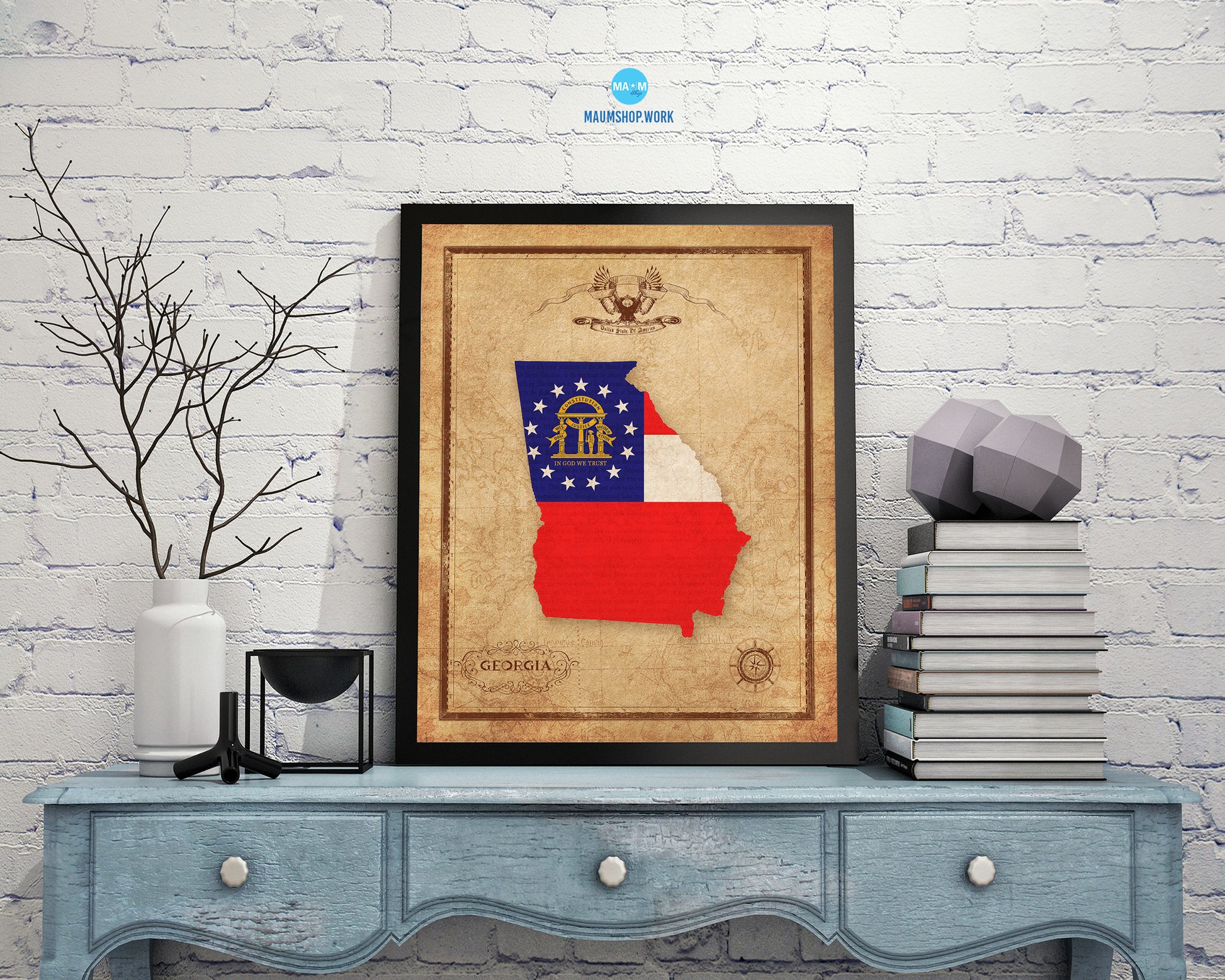 Georgia State Vintage Map Wood Framed Paper Print Wall Art Decor Gifts