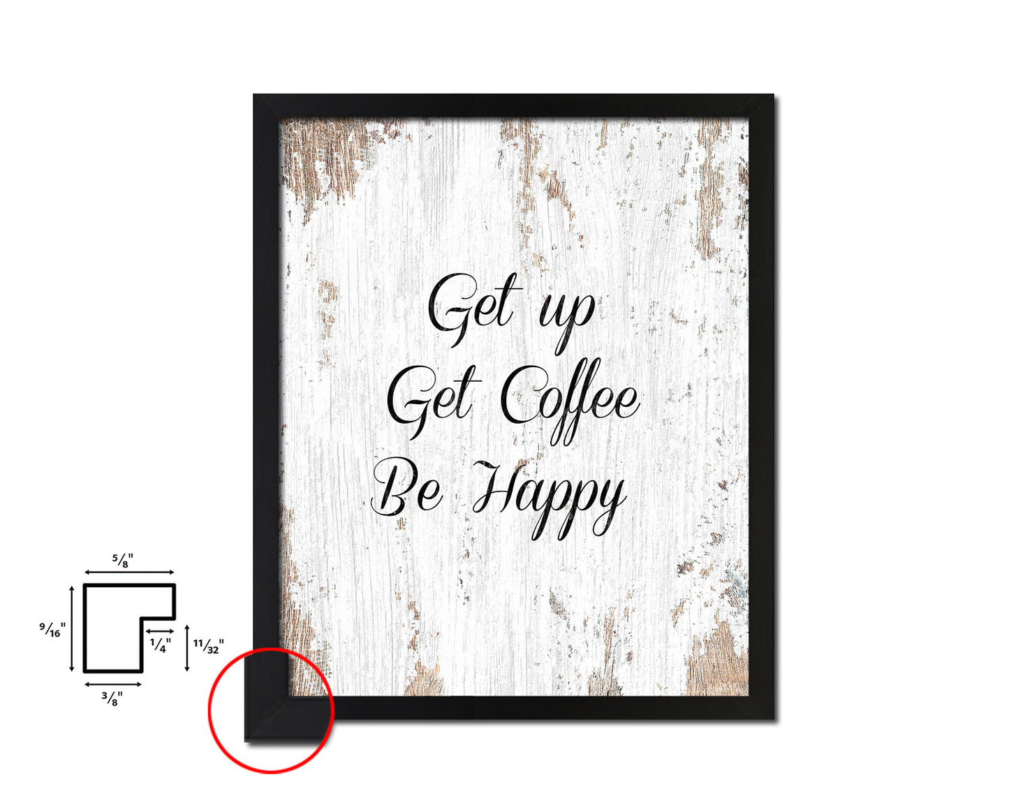 Get up get coffee be happy Quote Framed Artwork Print Wall Decor Art Gifts