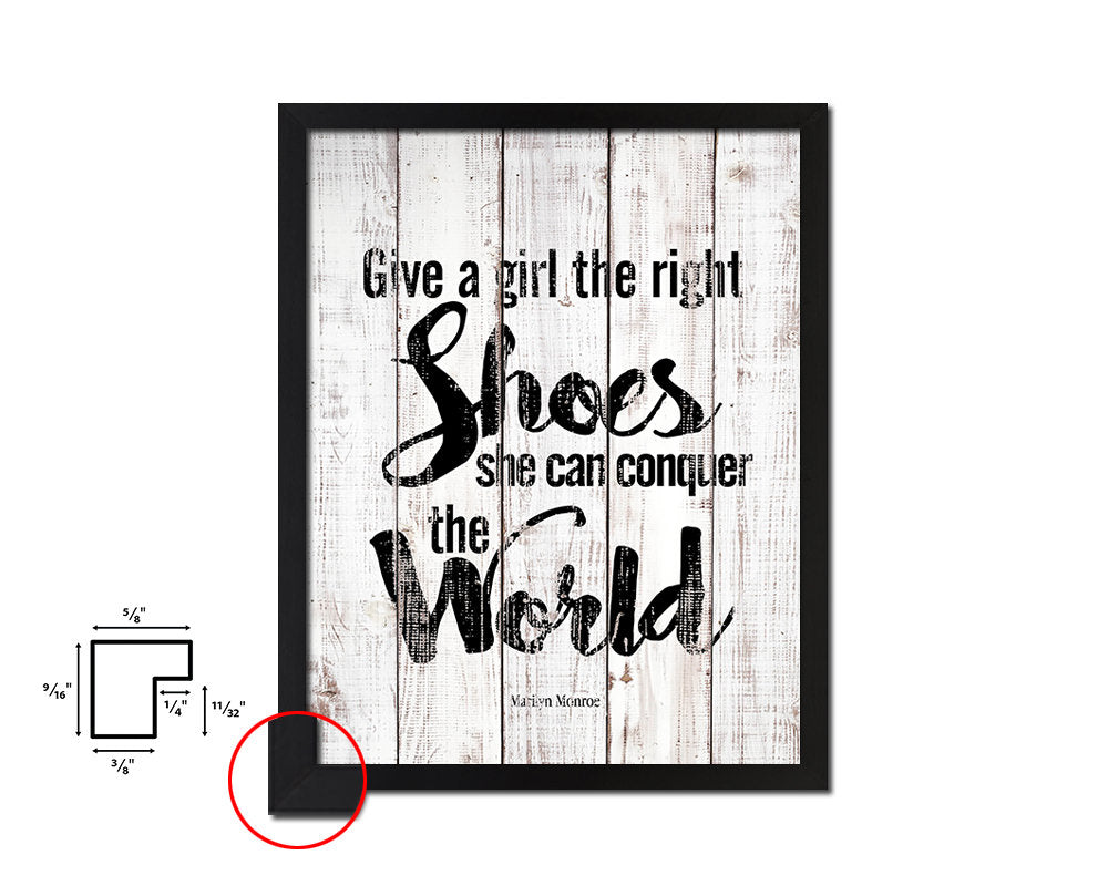 Give a girl the right shoes, Marilyn Monroe White Wash Quote Framed Print Wall Decor Art