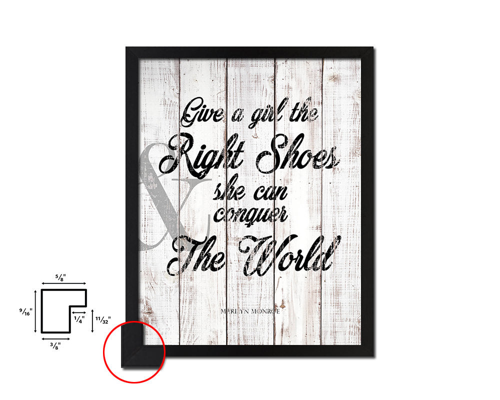 Give a girl the right shoes, Marilyn Monroe White Wash Quote Framed Print Wall Decor Art