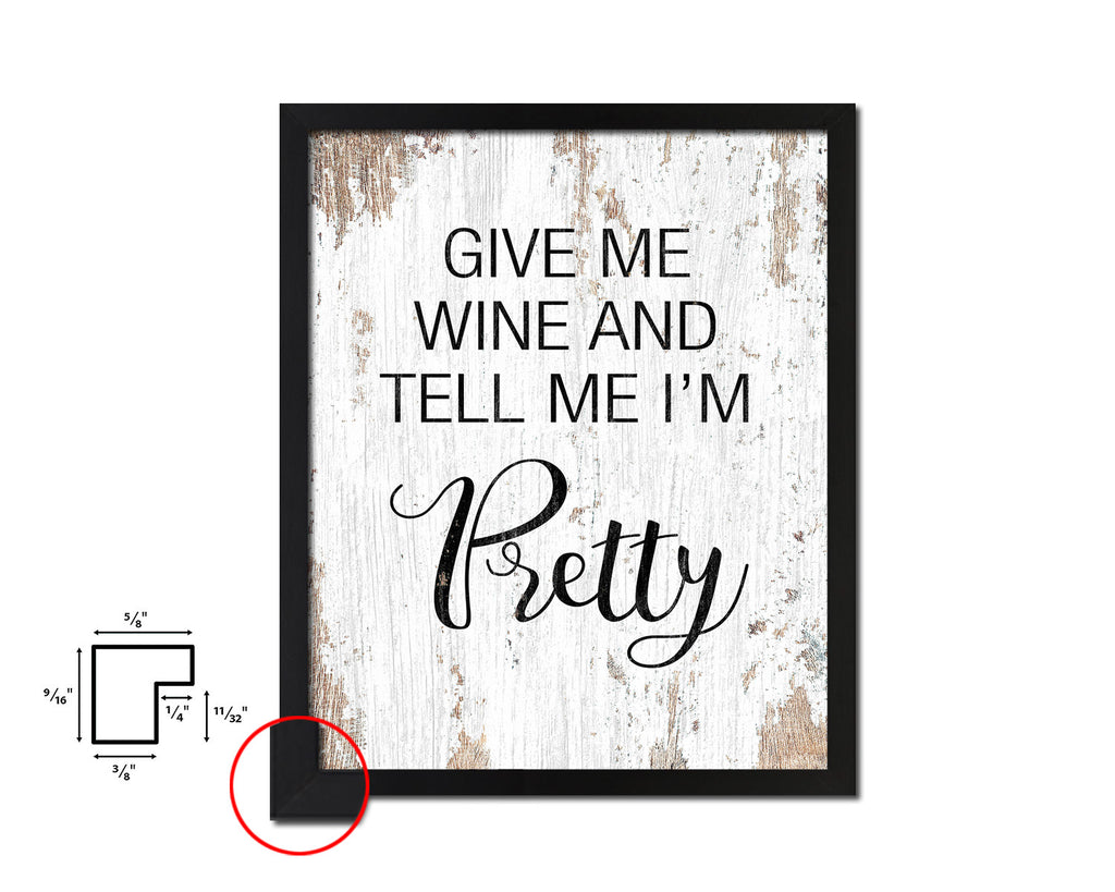 Give me wine and tell me I'm pretty Quote Framed Artwork Print Wall Decor Art Gifts