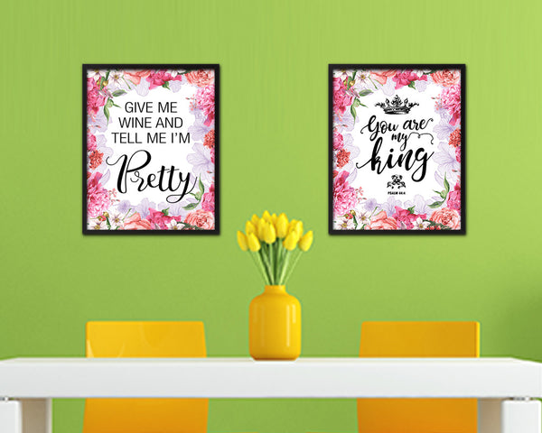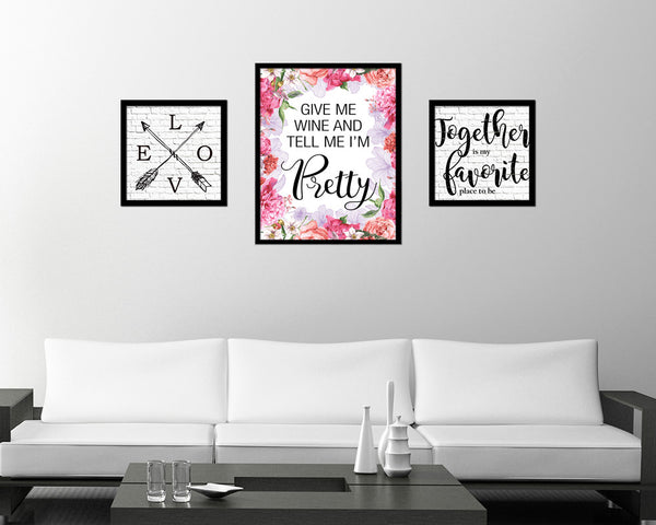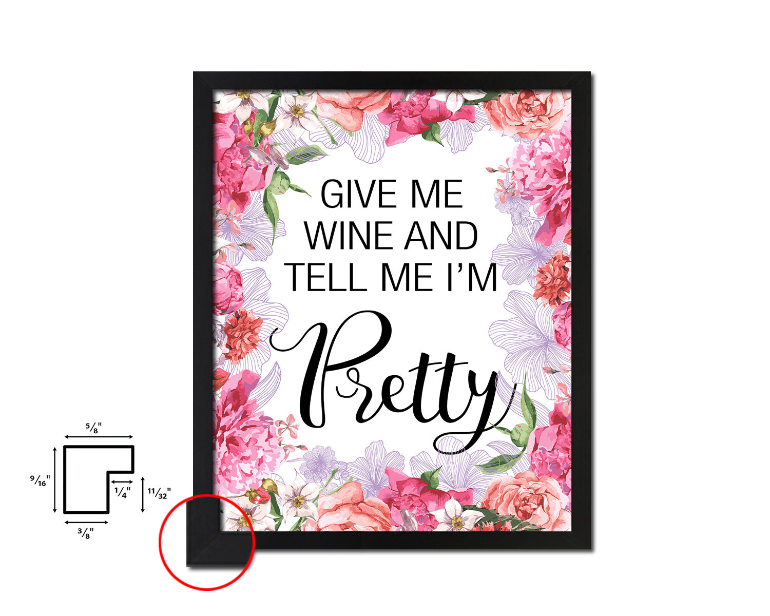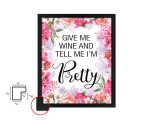 Give me wine and tell me I'm pretty Quote Framed Artwork Print Wall Decor Art Gifts