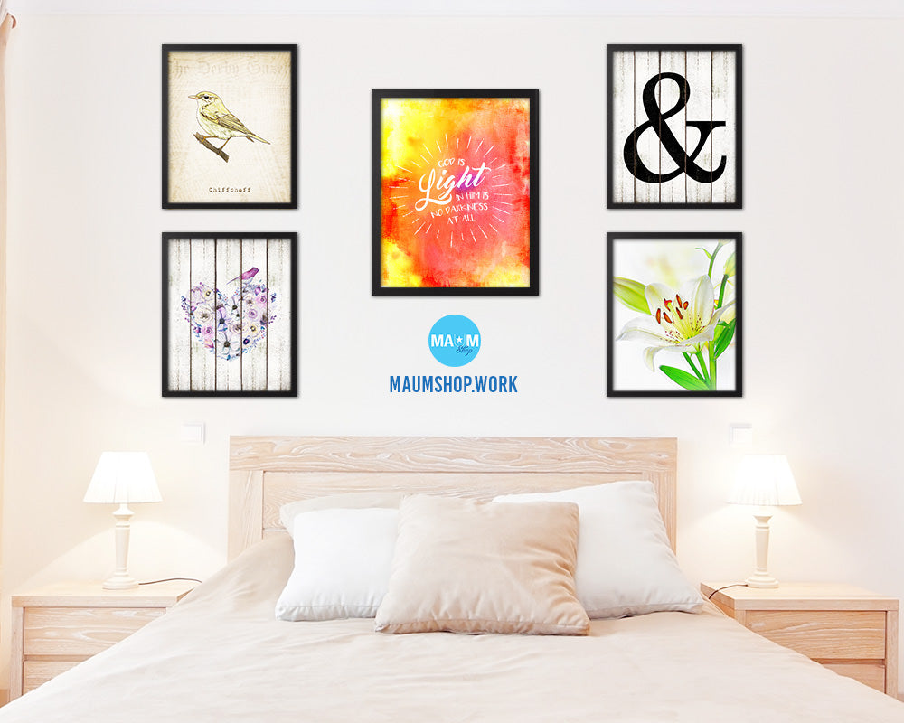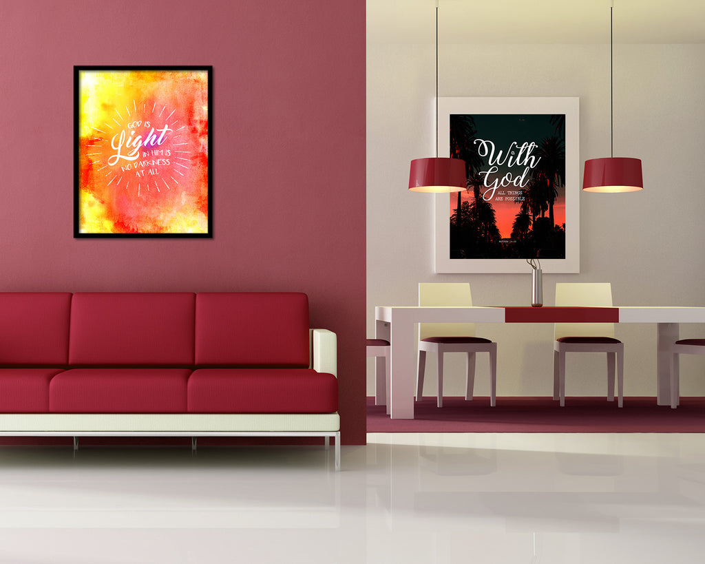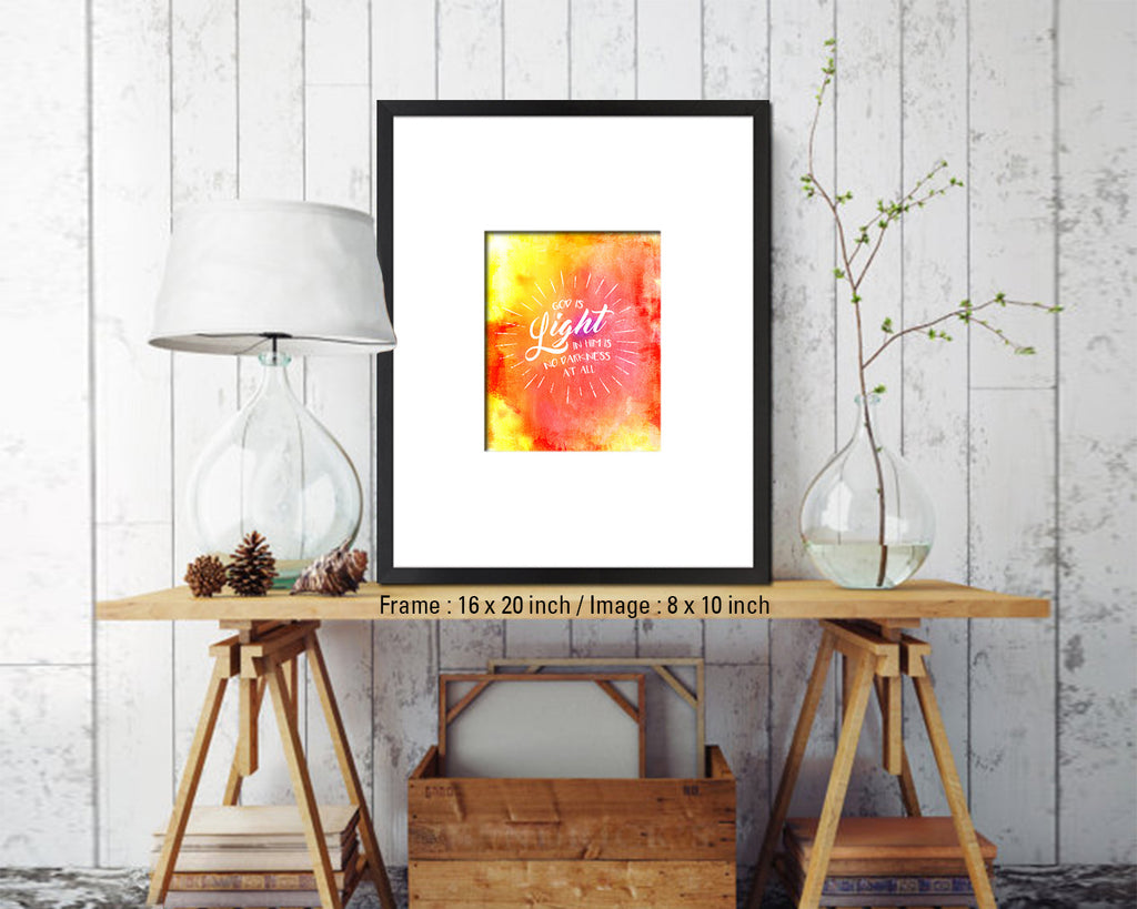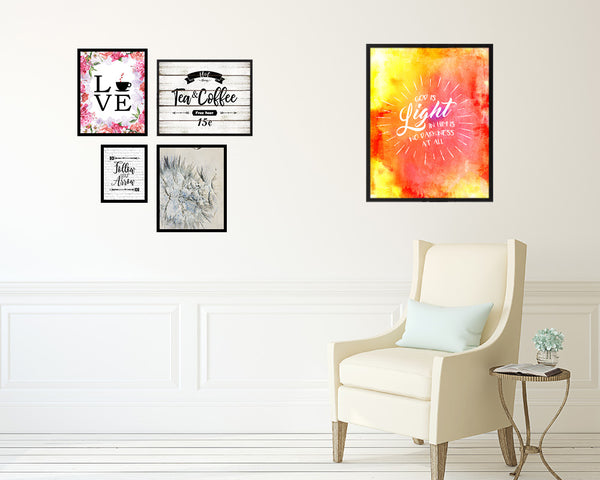 God is Ligfht in him is no darkness at all Quote Wood Framed Print Home Decor Wall Art Gifts