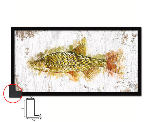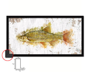 Golden Shiner Fish Art Wood Frame Shabby Chic Restaurant Sushi Wall Decor Gifts, 10" x 20"