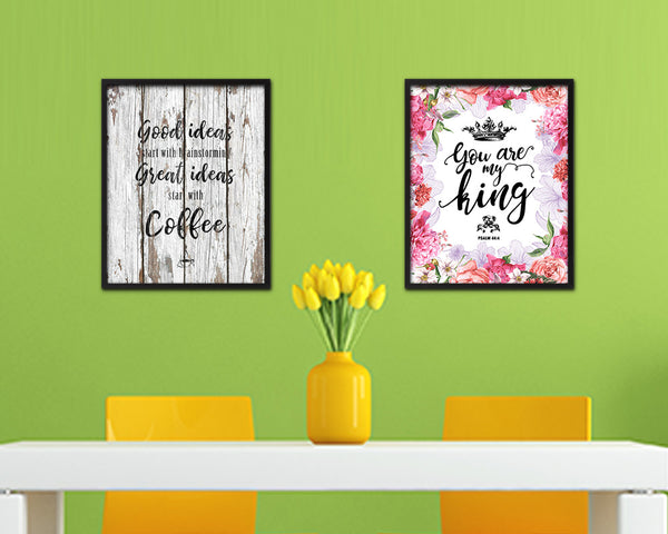 Good ideas start with brainstorming great ideas start with coffee Quote Framed Artwork Print Wall Decor Art Gifts